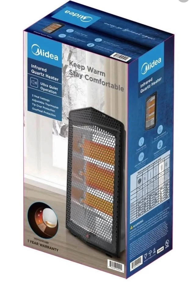 Brand New Radiant Quartz Space Heater – Black/White, Fast Heatin