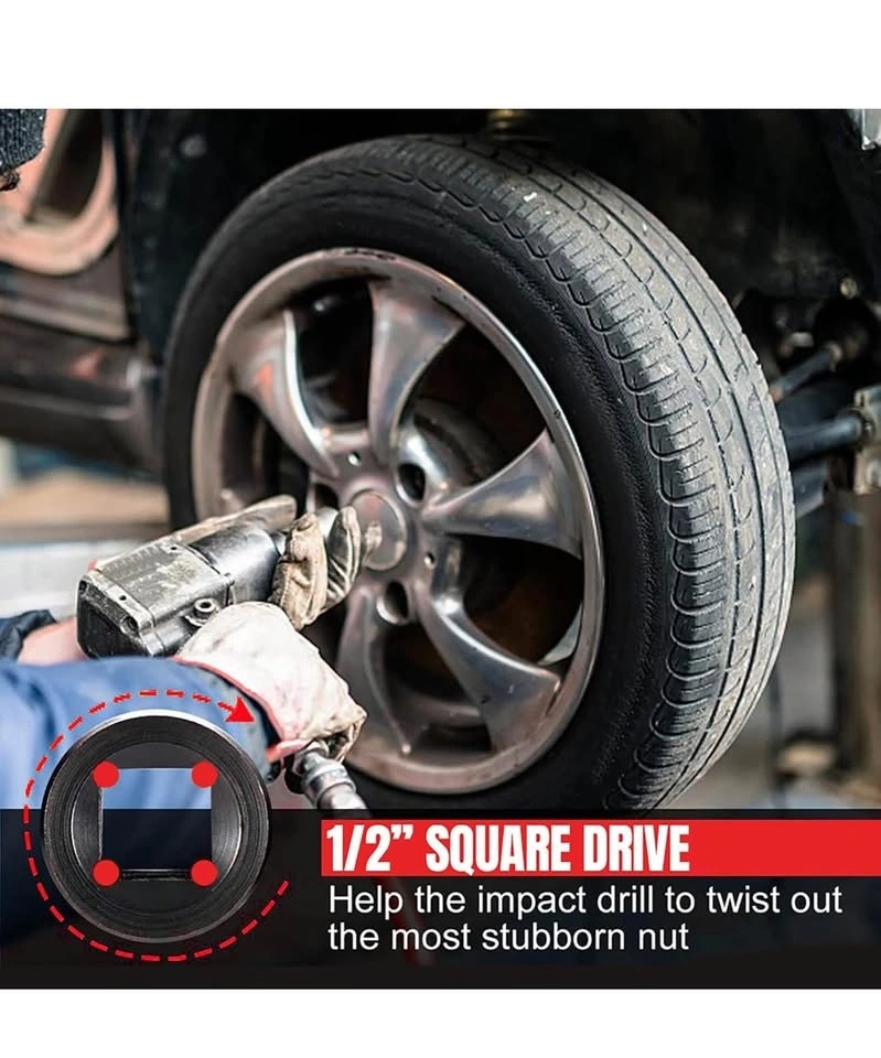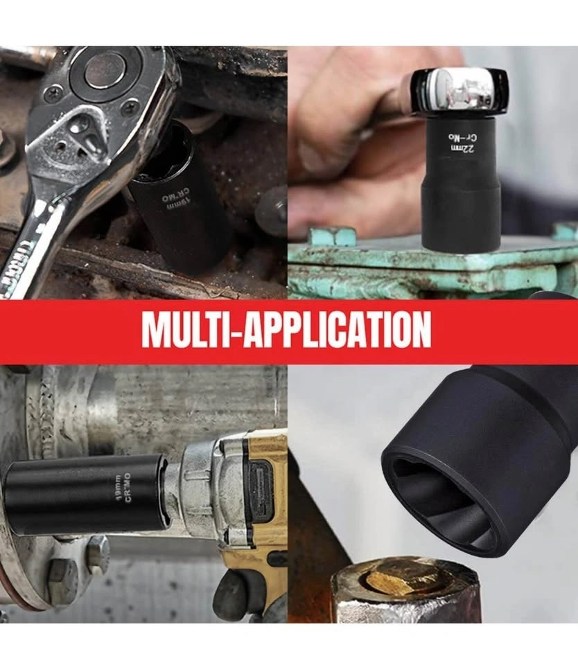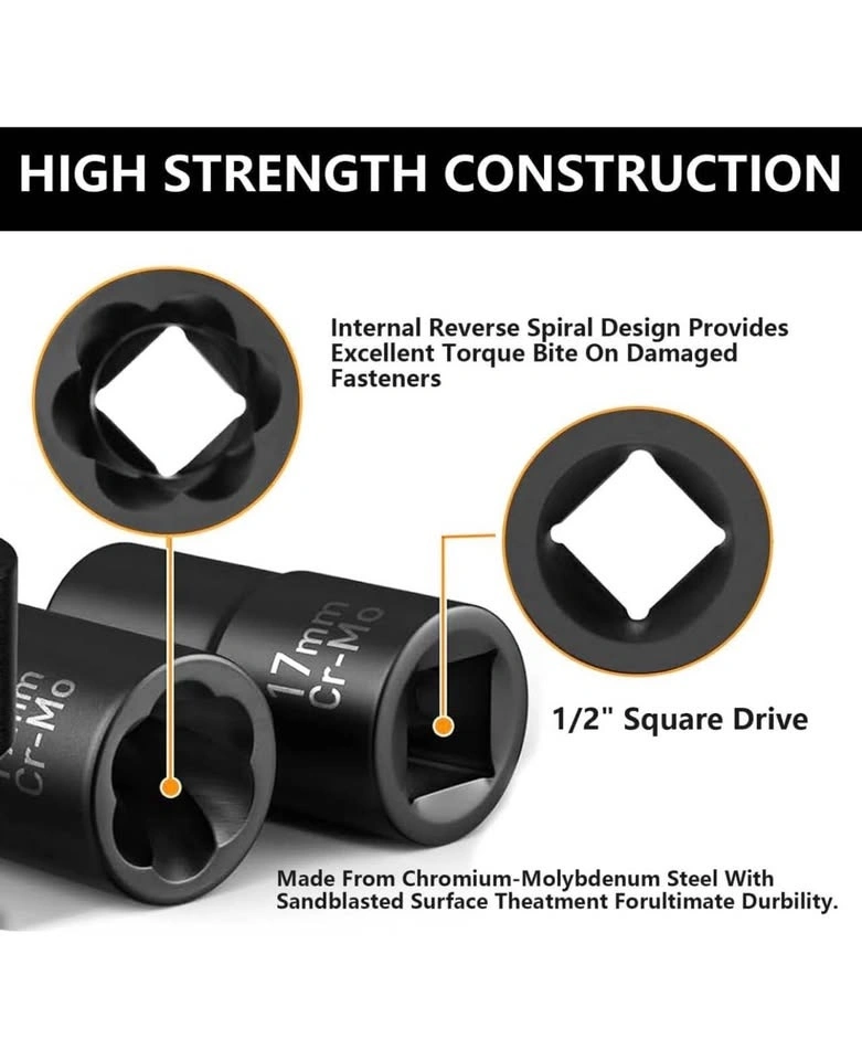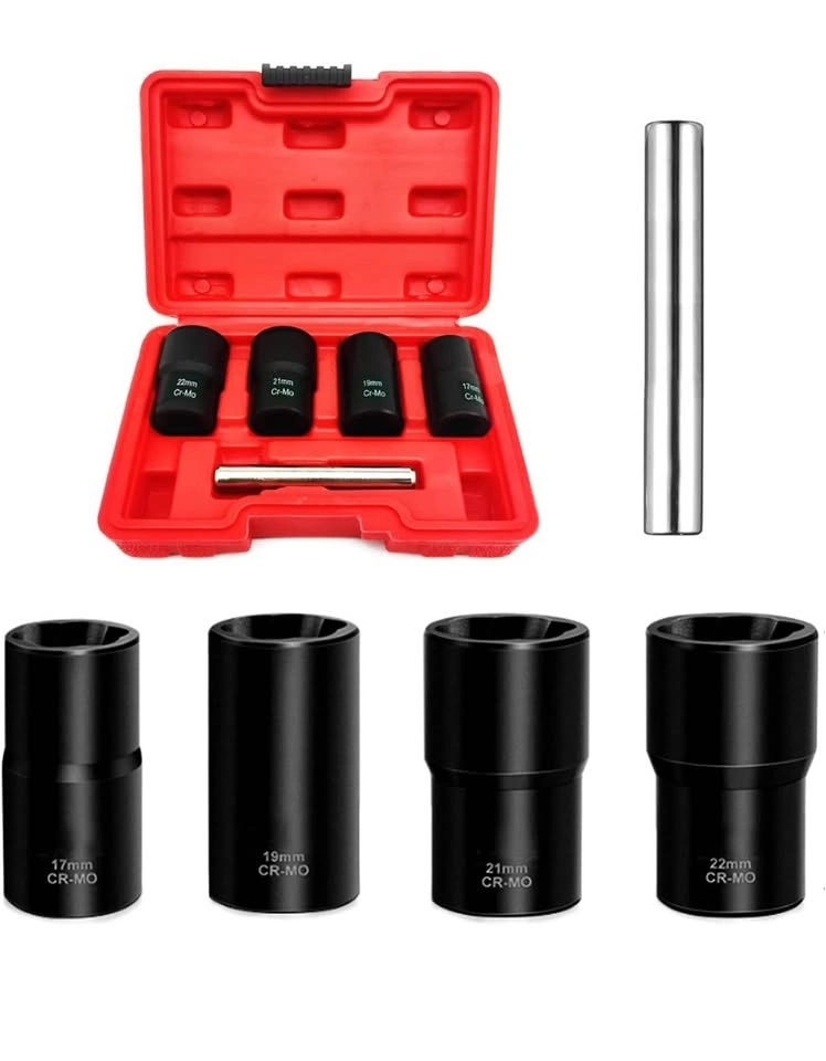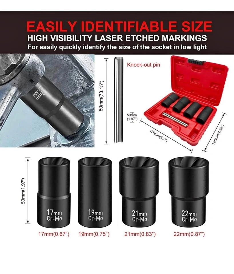 Greywolf 5 pcs Wheel Nut Removal Tool Set, 1/2 Inch Impact Torque Socket Set and Bolt Extractor Set, Wheel Lock Removal Kit, Torque Socket Set for Damaged, Frozen, Rusted Round Bolts, Metric 17-22mm