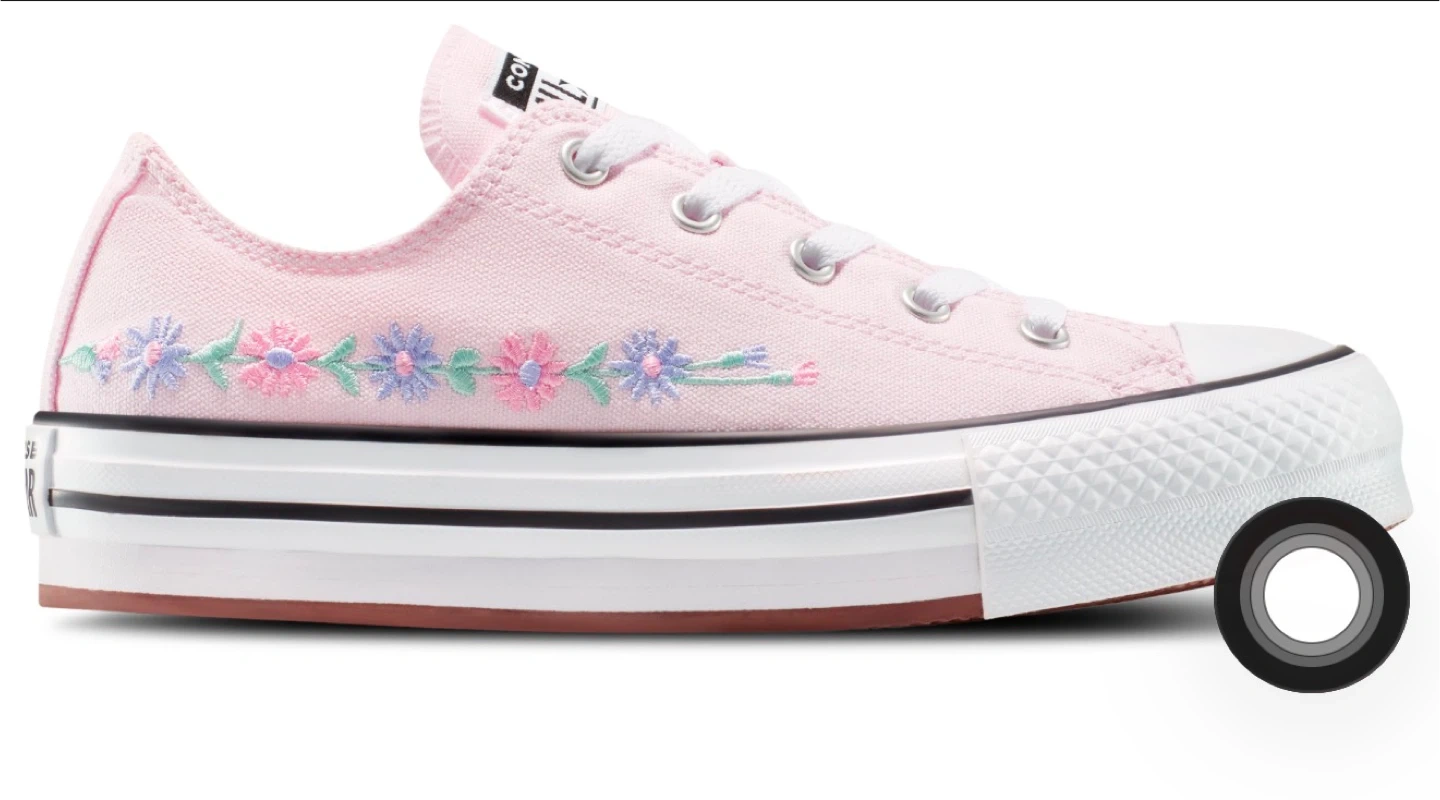 These are a pair of Converse Chuck Taylor All Star Lift Platform sneakers in a lovely pink colour. They feature a delicate floral design embroidered along the side. Perfect for adding a touch of spring to your step! size 5.5 with the original box