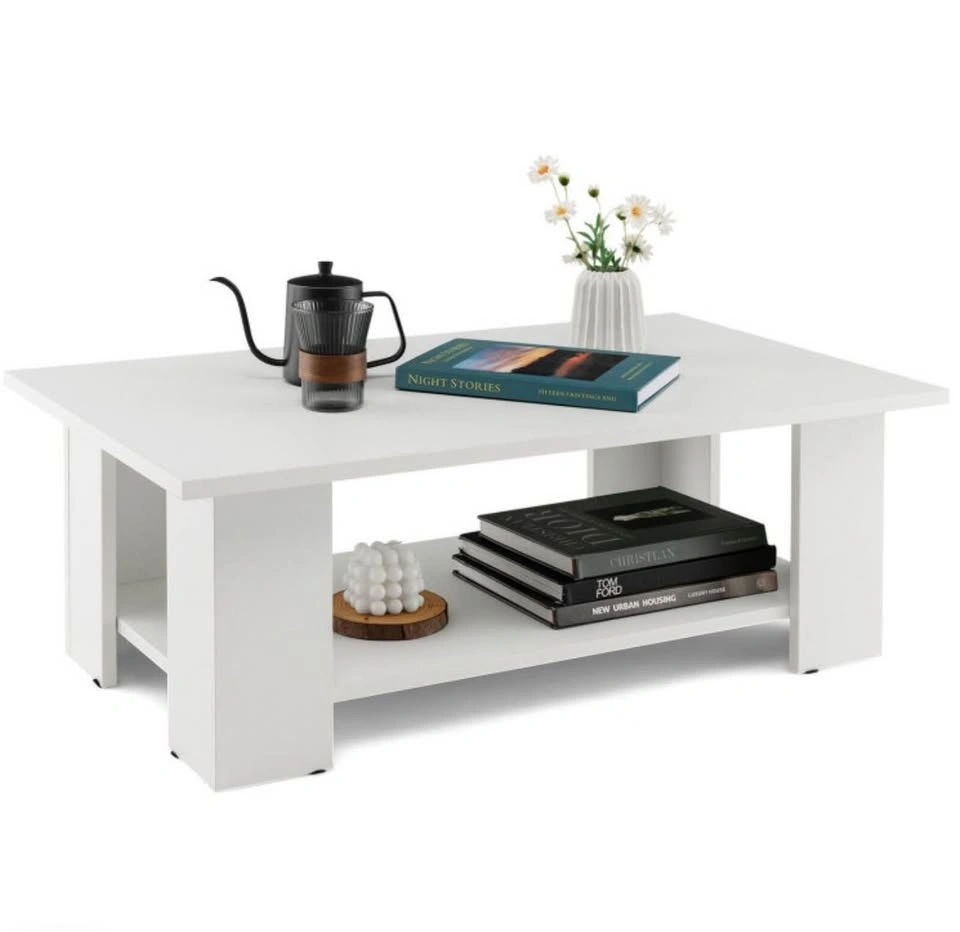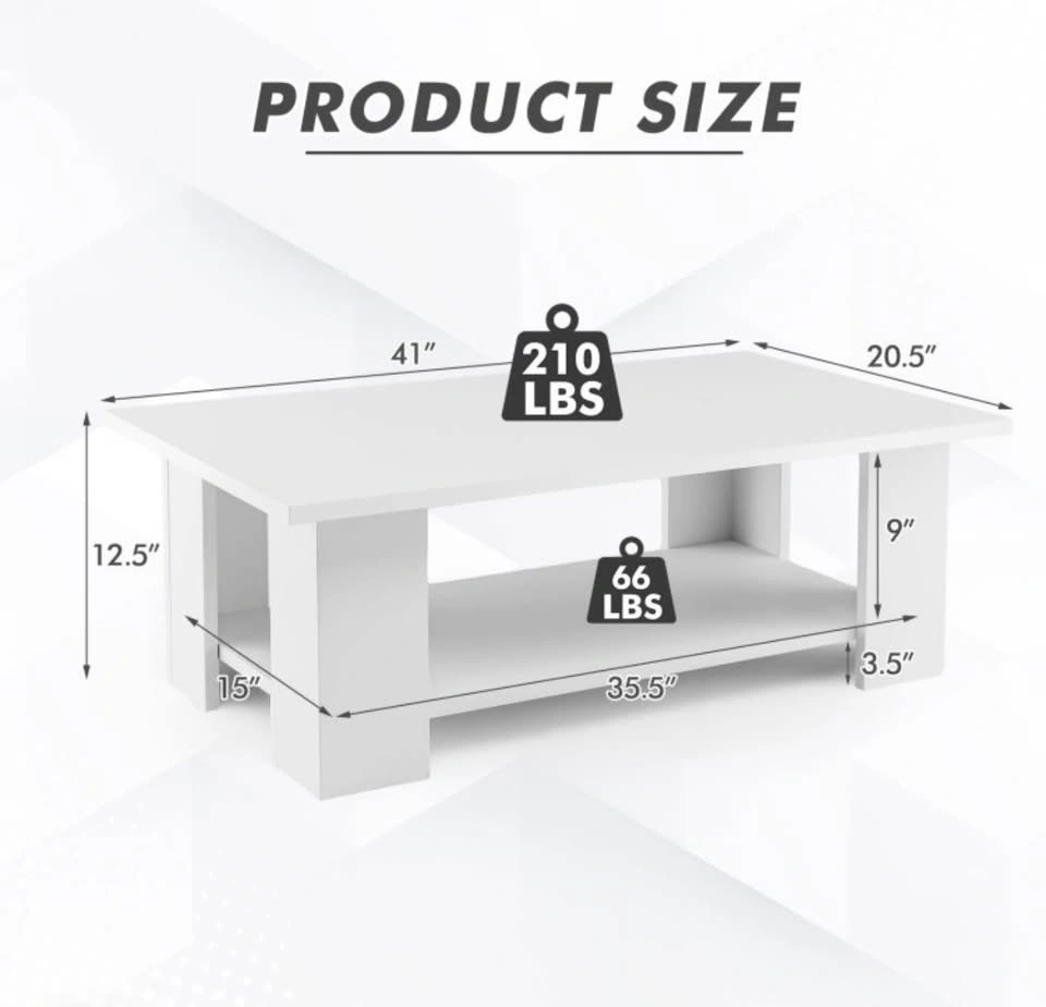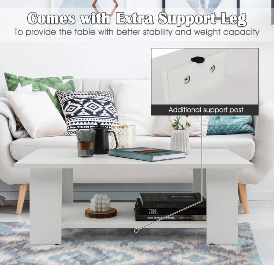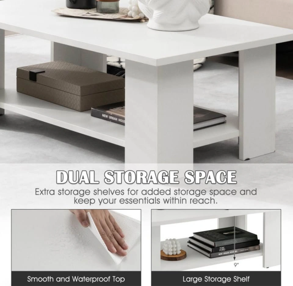 Modern 41" 2-Tier Wooden Coffee Table with Storage Shelf