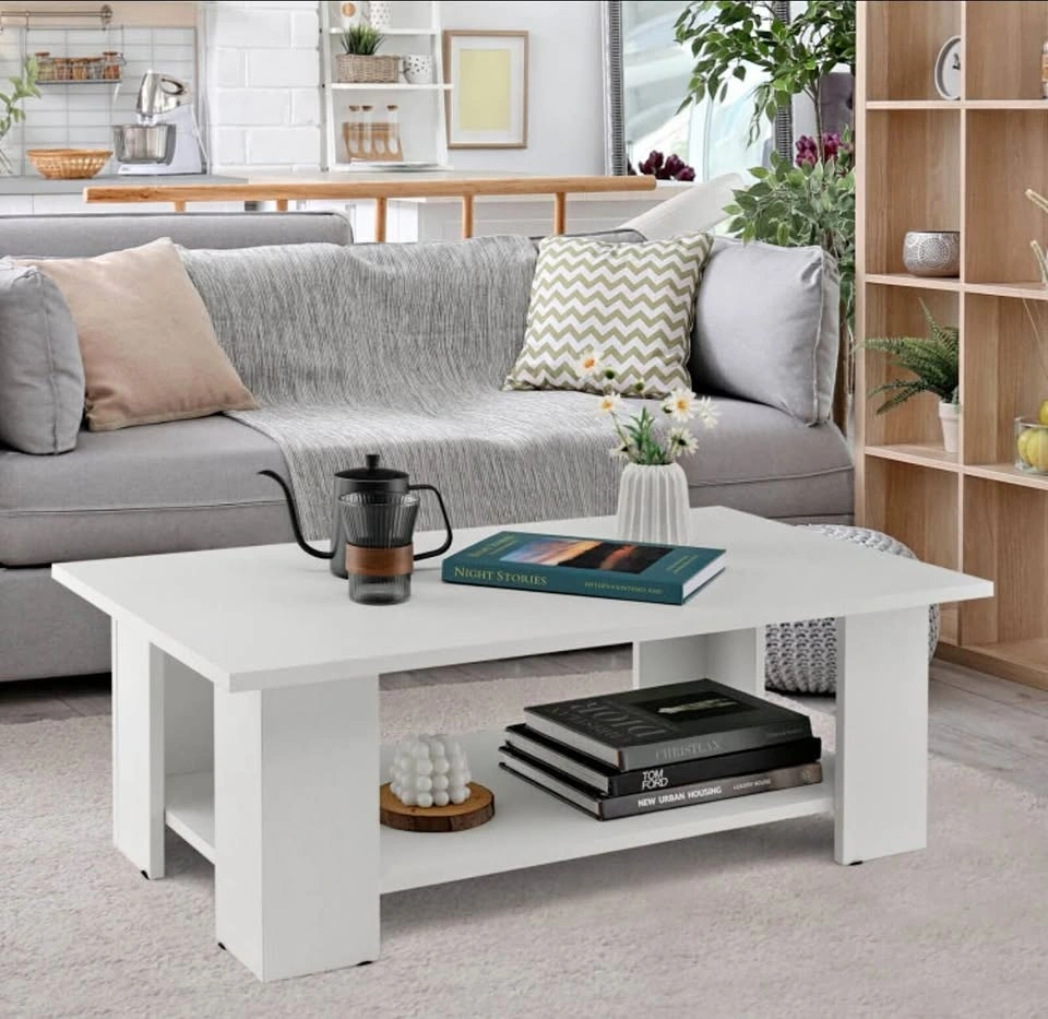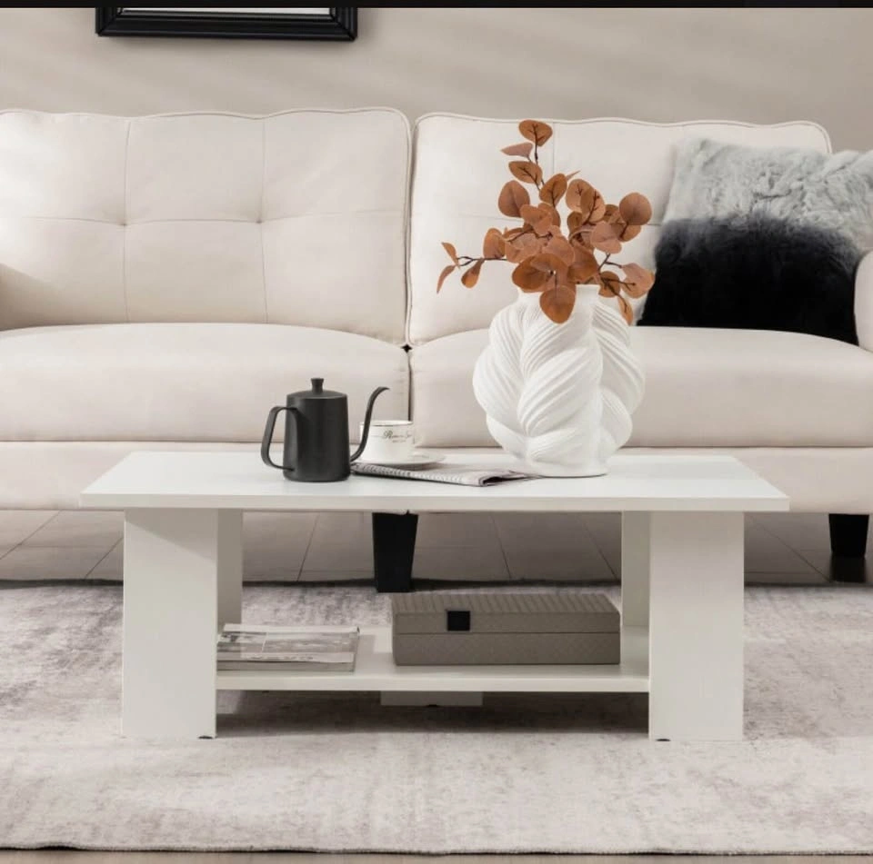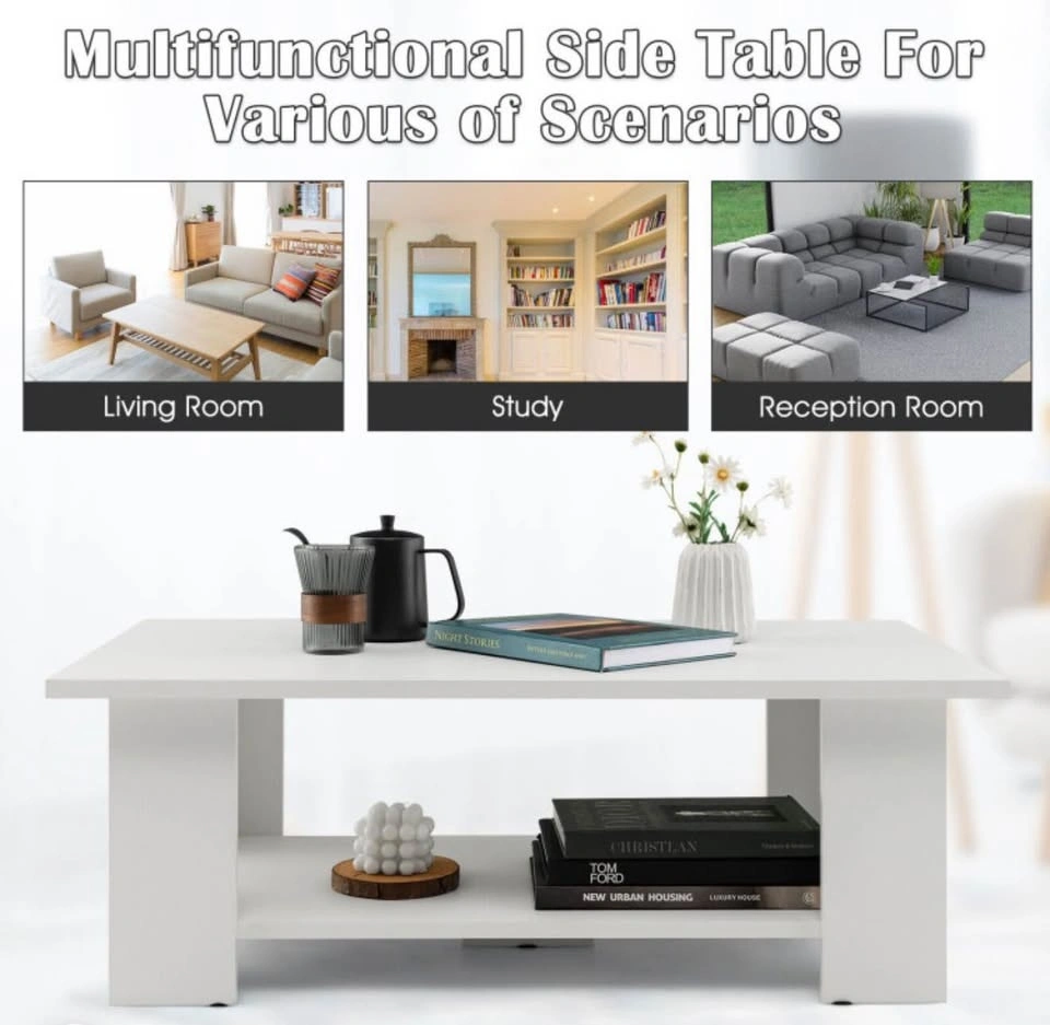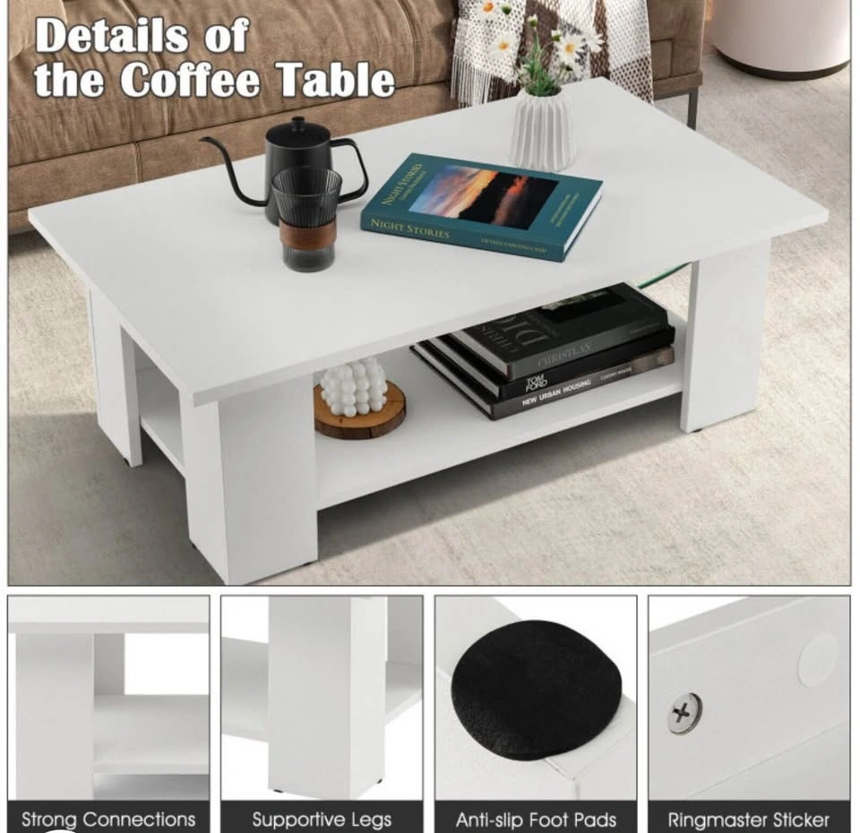 Modern 41" 2-Tier Wooden Coffee Table with Storage Shelf