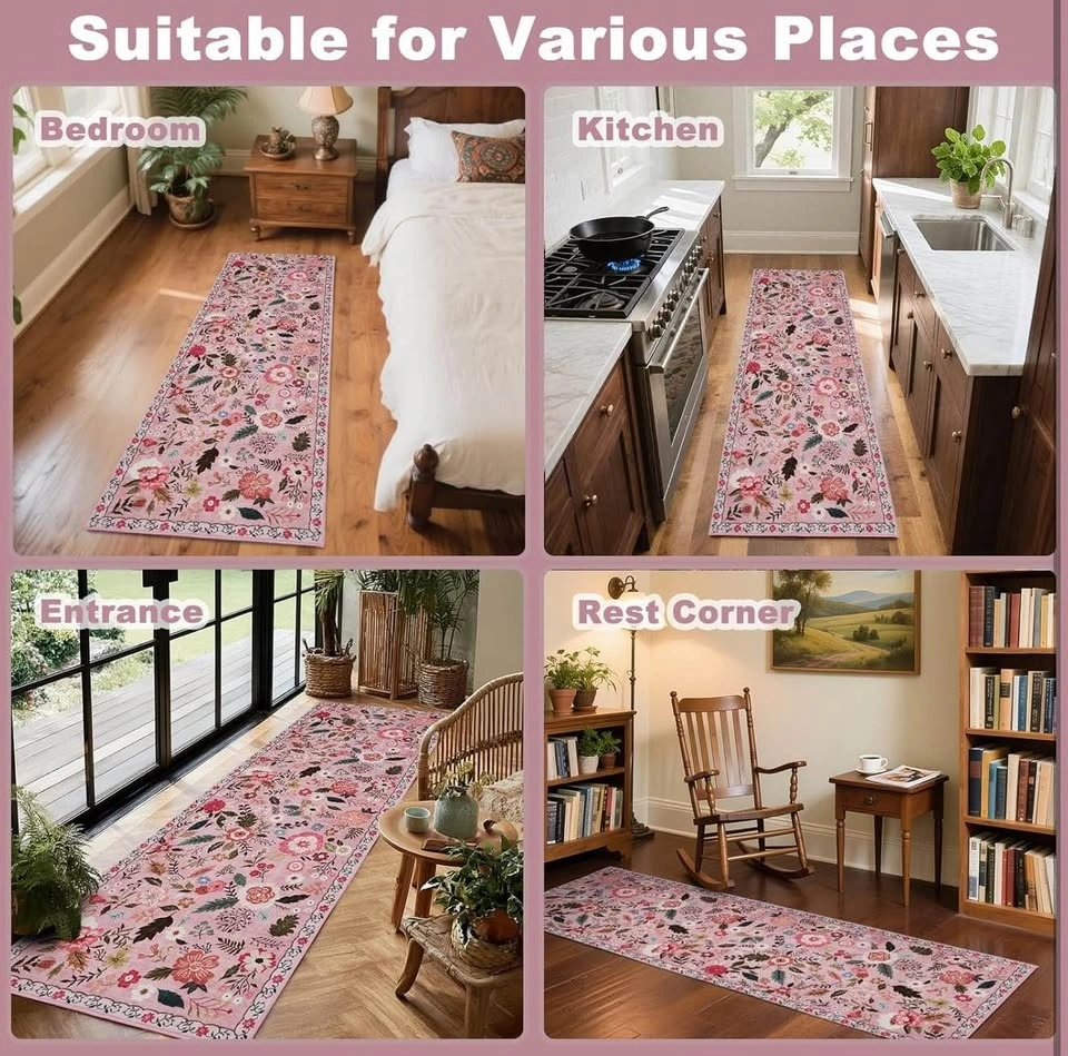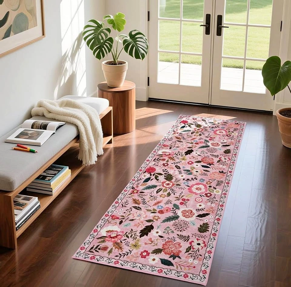 Floral Runner Rugs for Hallway 2x6 -Pink (brand new)