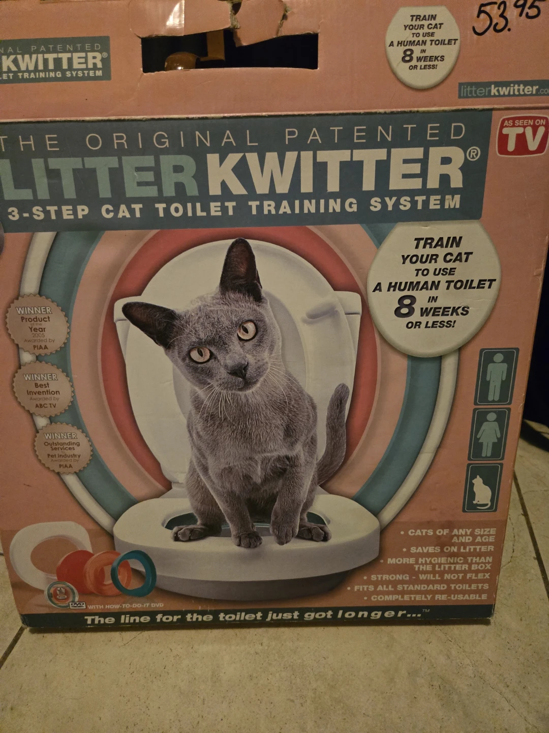 Litter Kwitter 3-Step Cat Toilet Training System! It's the original patented system to train your cat to use a human toilet in 8 weeks or less.