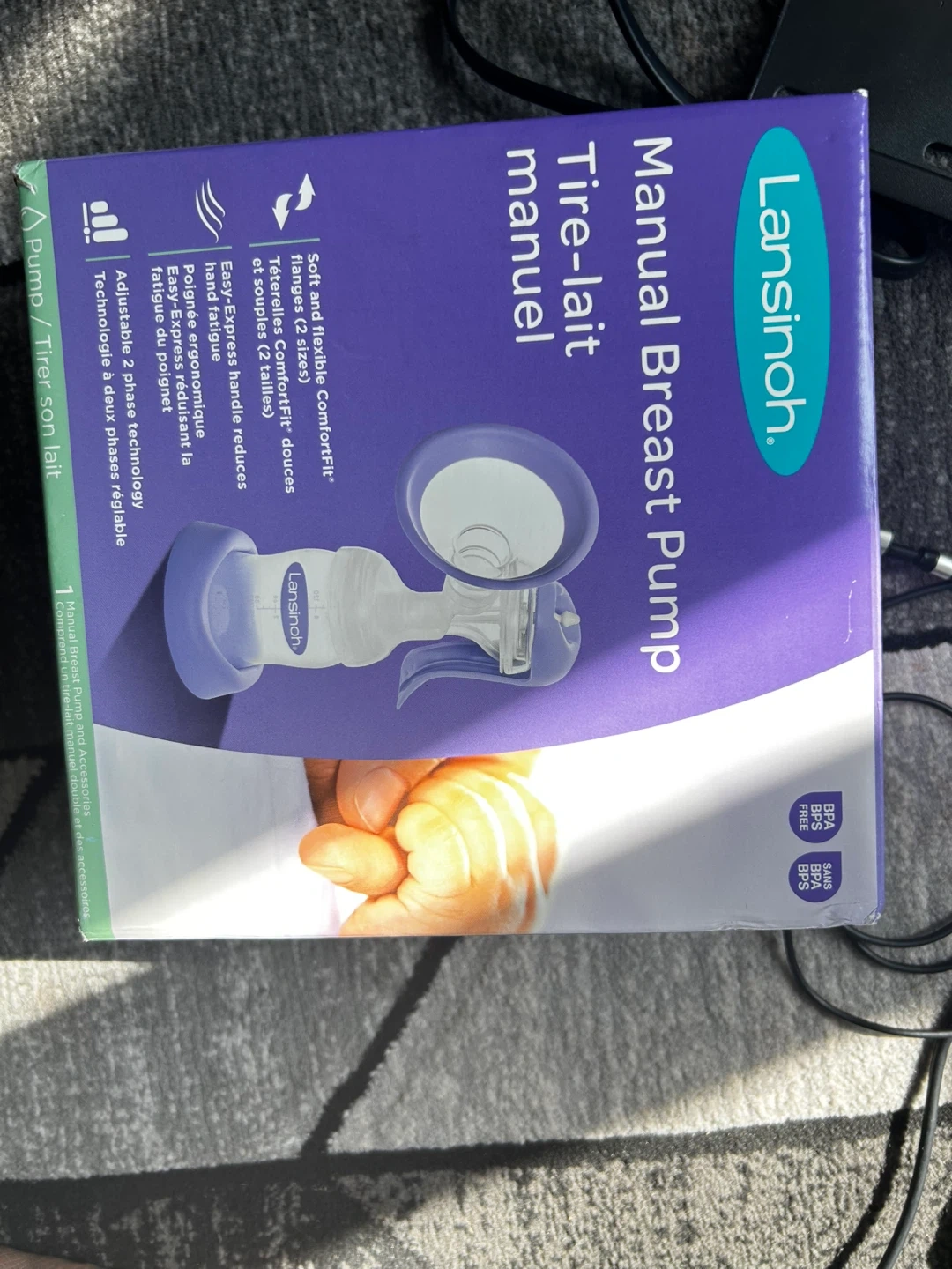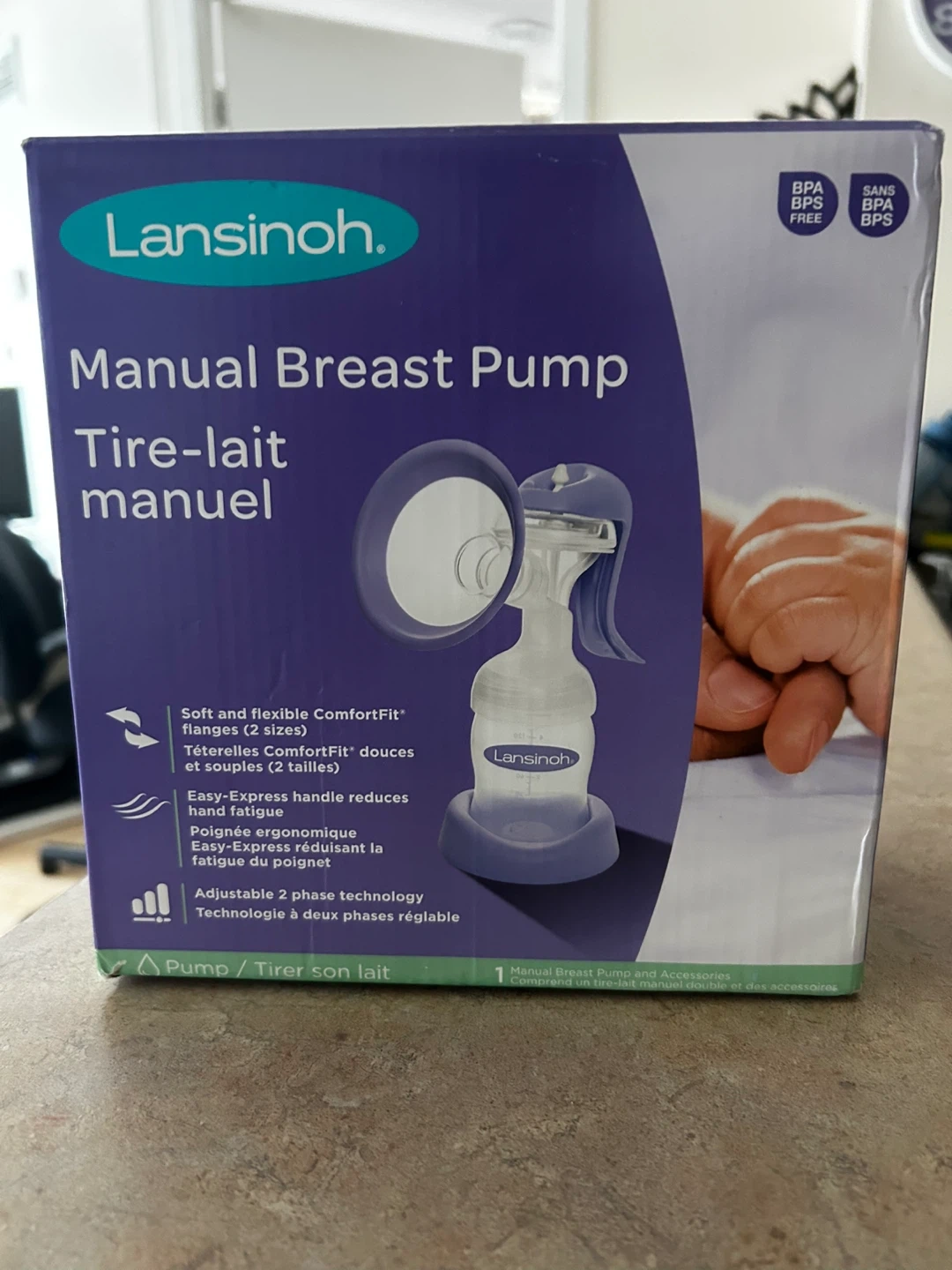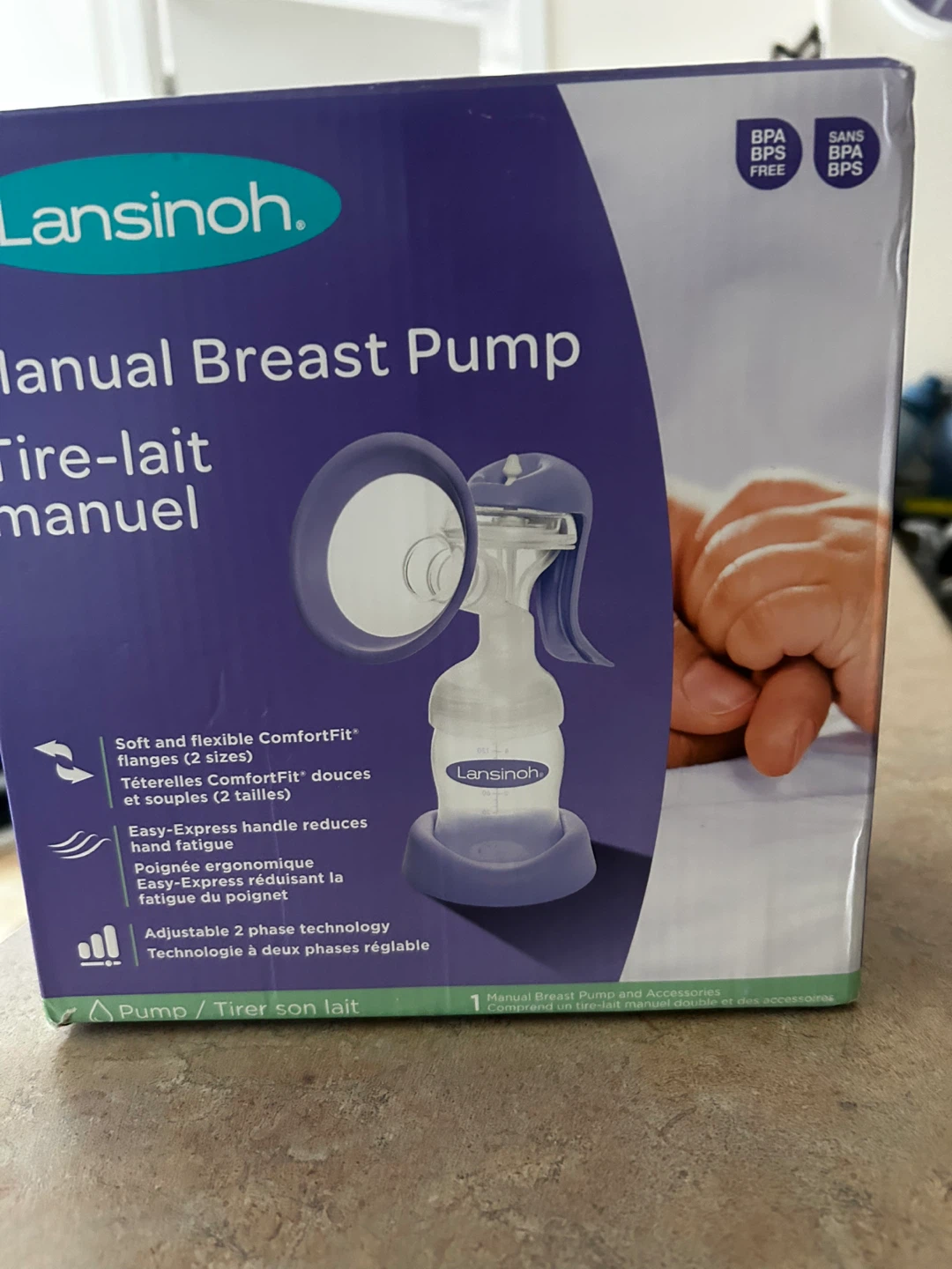 Selling a Lansinoh Manual Breast Pump. It comes with Soft and flexible ComfortFit flanges in 2 sizes. The Easy-Express handle reduces hand fatigue. Adjustable 2 phase technology. Box included!