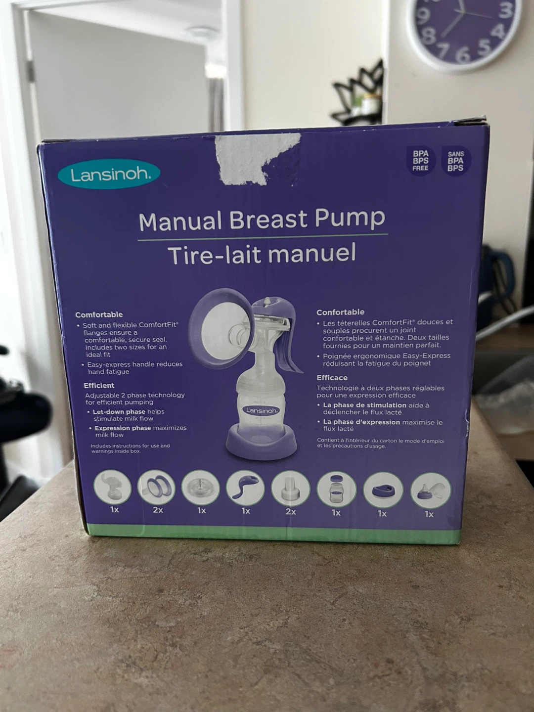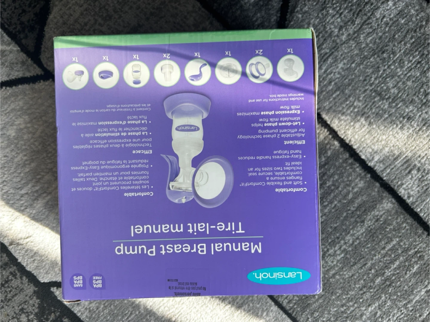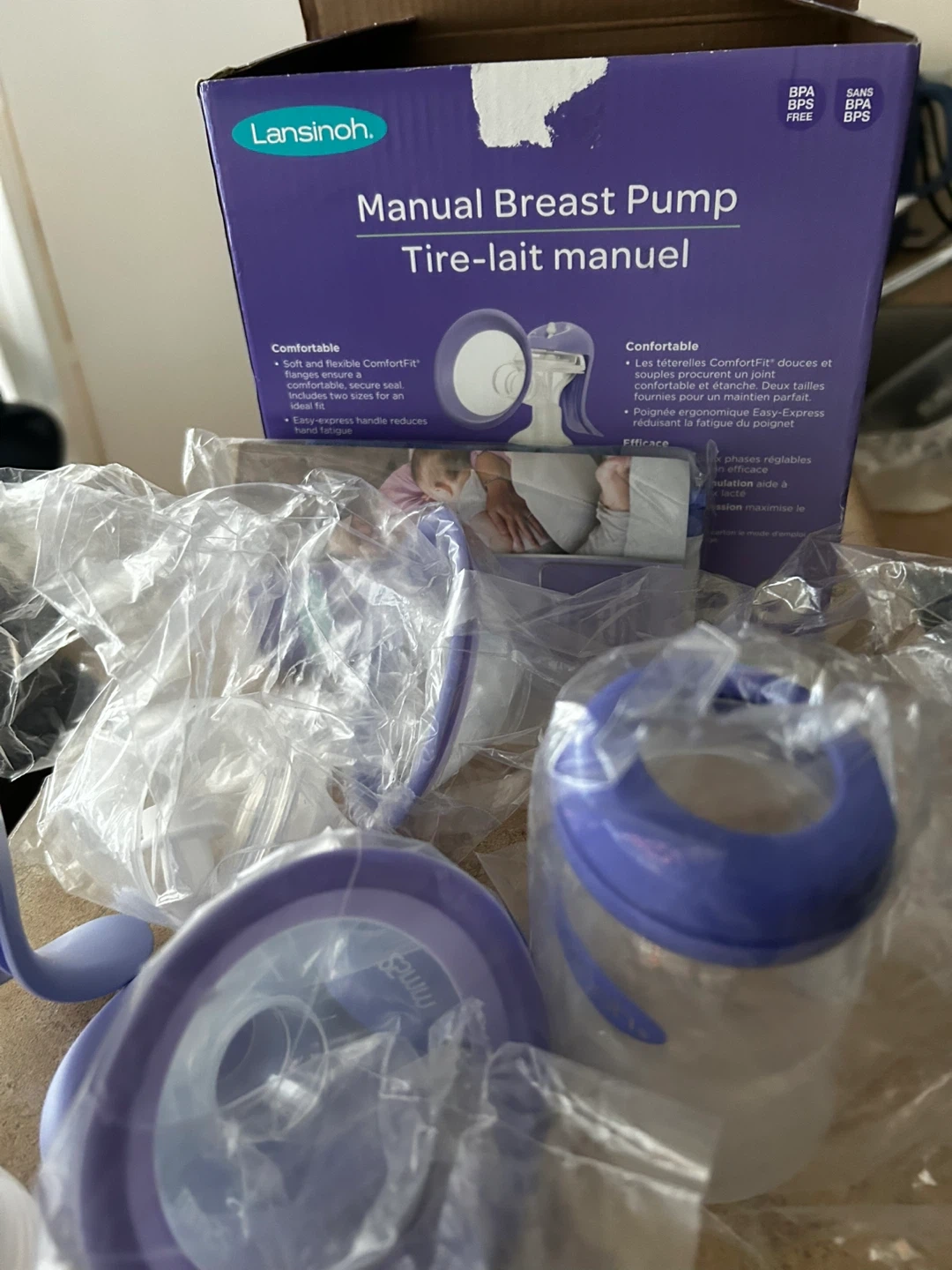 Selling a Lansinoh Manual Breast Pump. It comes with Soft and flexible ComfortFit flanges in 2 sizes. The Easy-Express handle reduces hand fatigue. Adjustable 2 phase technology. Box included!