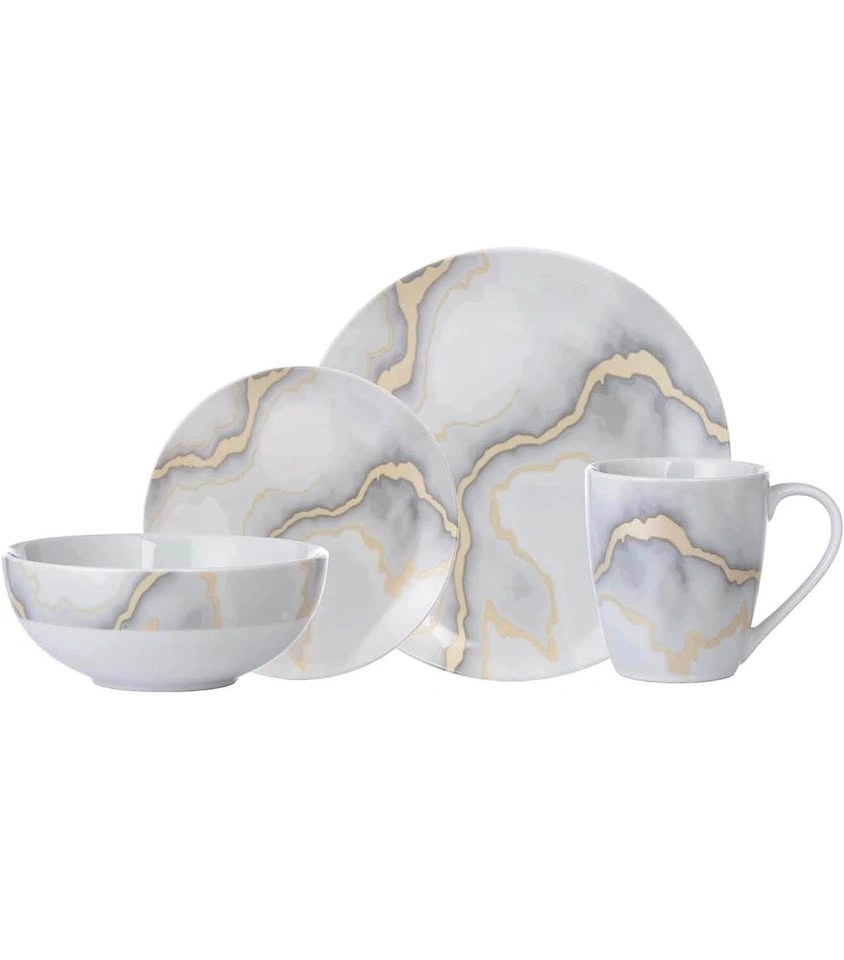 Safdie & Co. Electric Marble 16 Piece Dinnerware Set, Service for 4, Fiesta Dinnerware, Home Trends and Home Food Network Essentials, Porcelain Dinner Plates, 16" L x 12" W x 15" H
