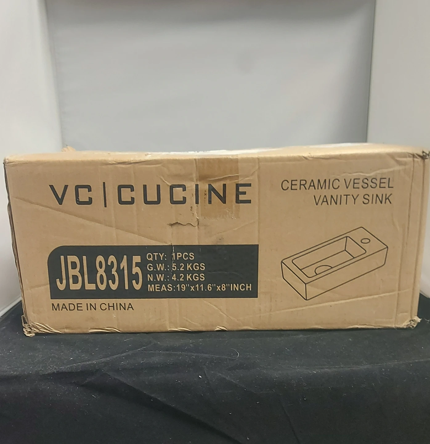 Selling a brand new VCI Cucine ceramic vessel vanity sink, model JBL8315! It's still in its original box. The box indicates the sink's dimensions are 19" x 11.6" x 8". 189 each & have 2 new in box.