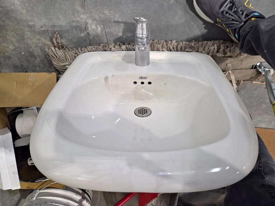 American Standard sink with faucet. Was installed in a new warehouse build and replaced once the tenant moved in and setup the offices/warehouse.