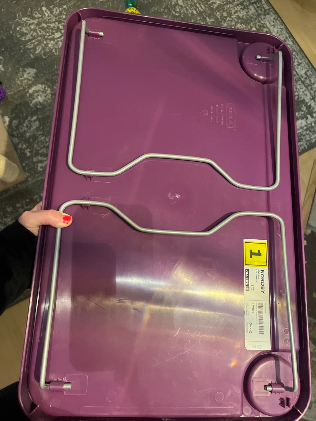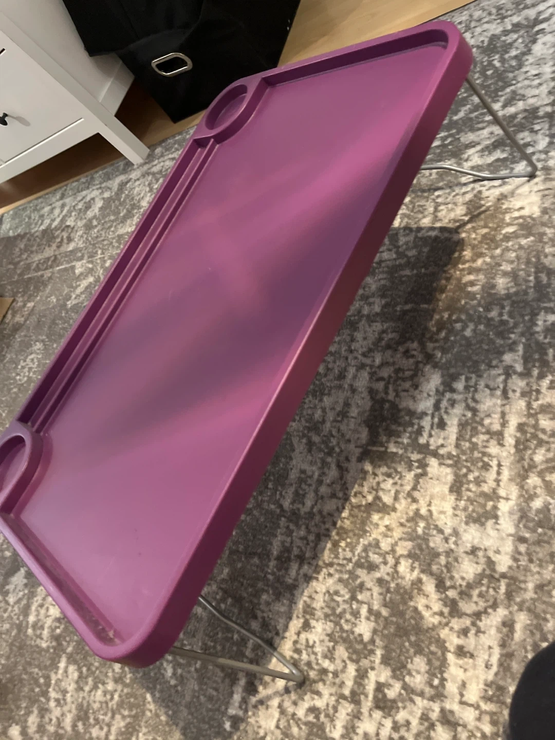 Selling a purple IKEA NORDBY tray table. It's in great shape and perfect for breakfast in bed or working from the couch. The tray has a sturdy surface and foldable legs for easy storage