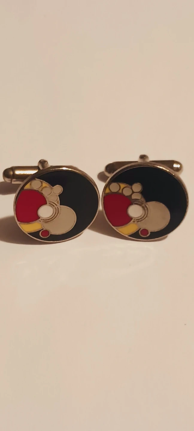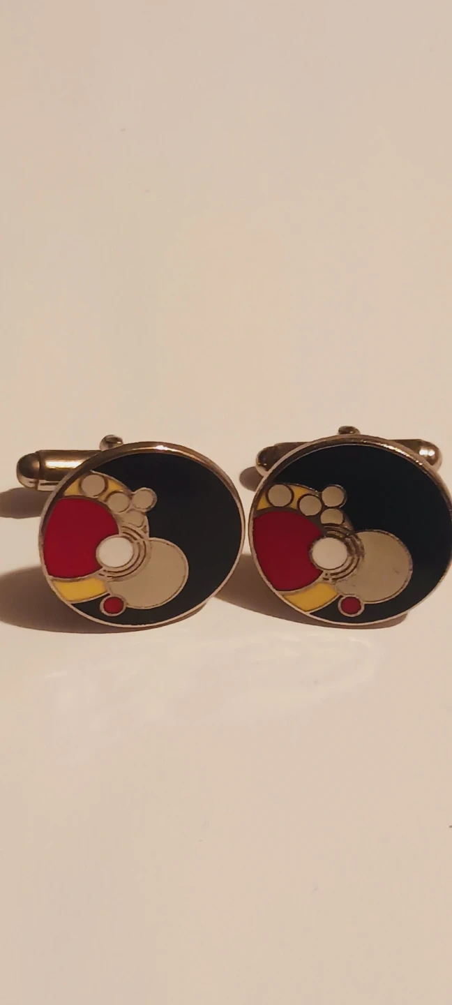 FRANK LLOYD WRIGHT Signed cufflinks! They feature a unique design with black, red, yellow, and white colors. Great for adding a touch of style to your outfit !!