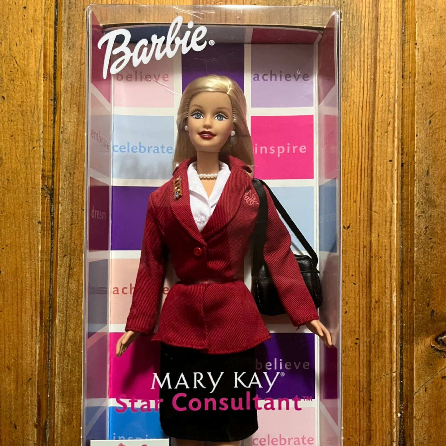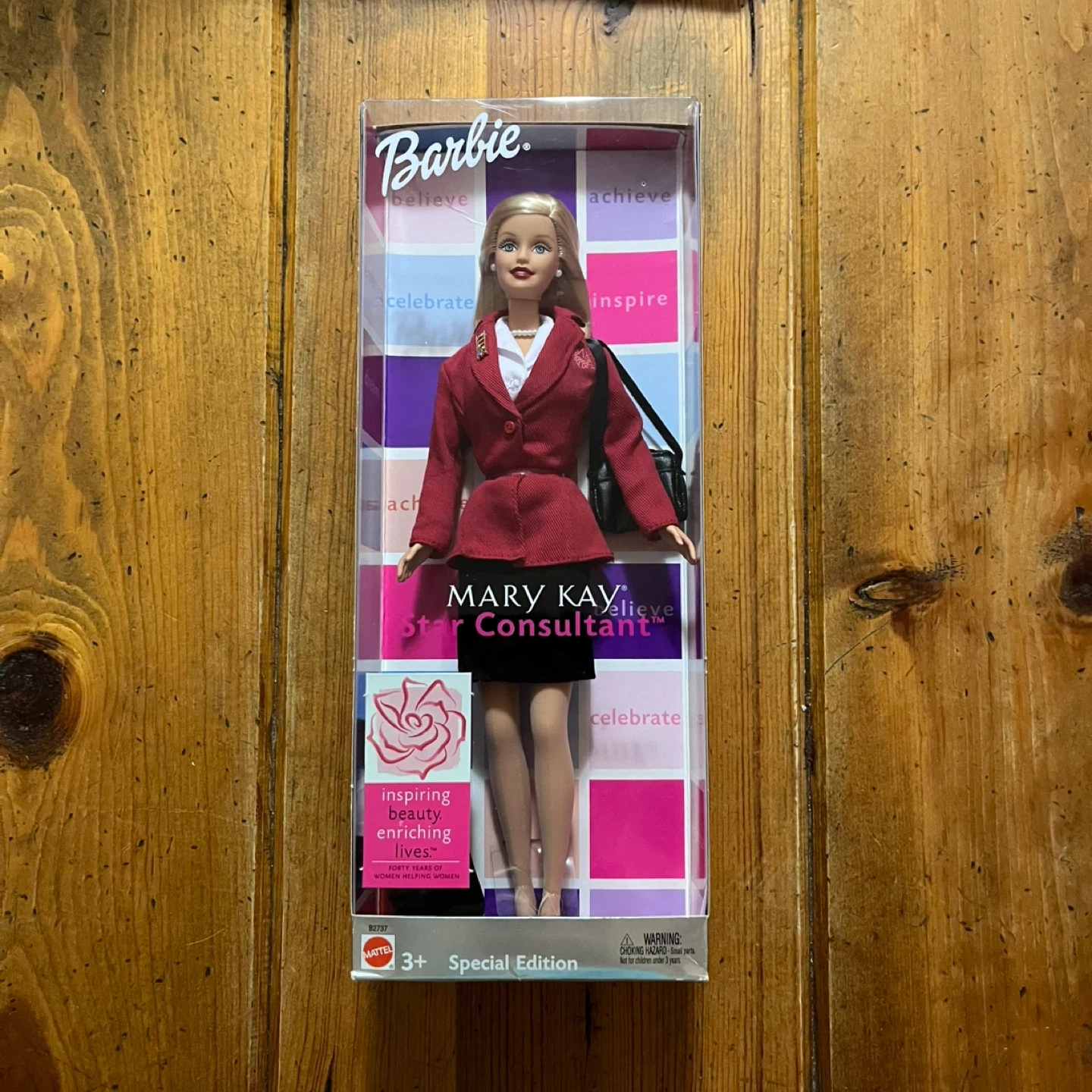 This is a special edition Barbie created in partnership with Mary Kay, celebrating the iconic Star Consultant look. The doll comes in its original packaging and has never been opened. The box and doll are both in excellent condition.