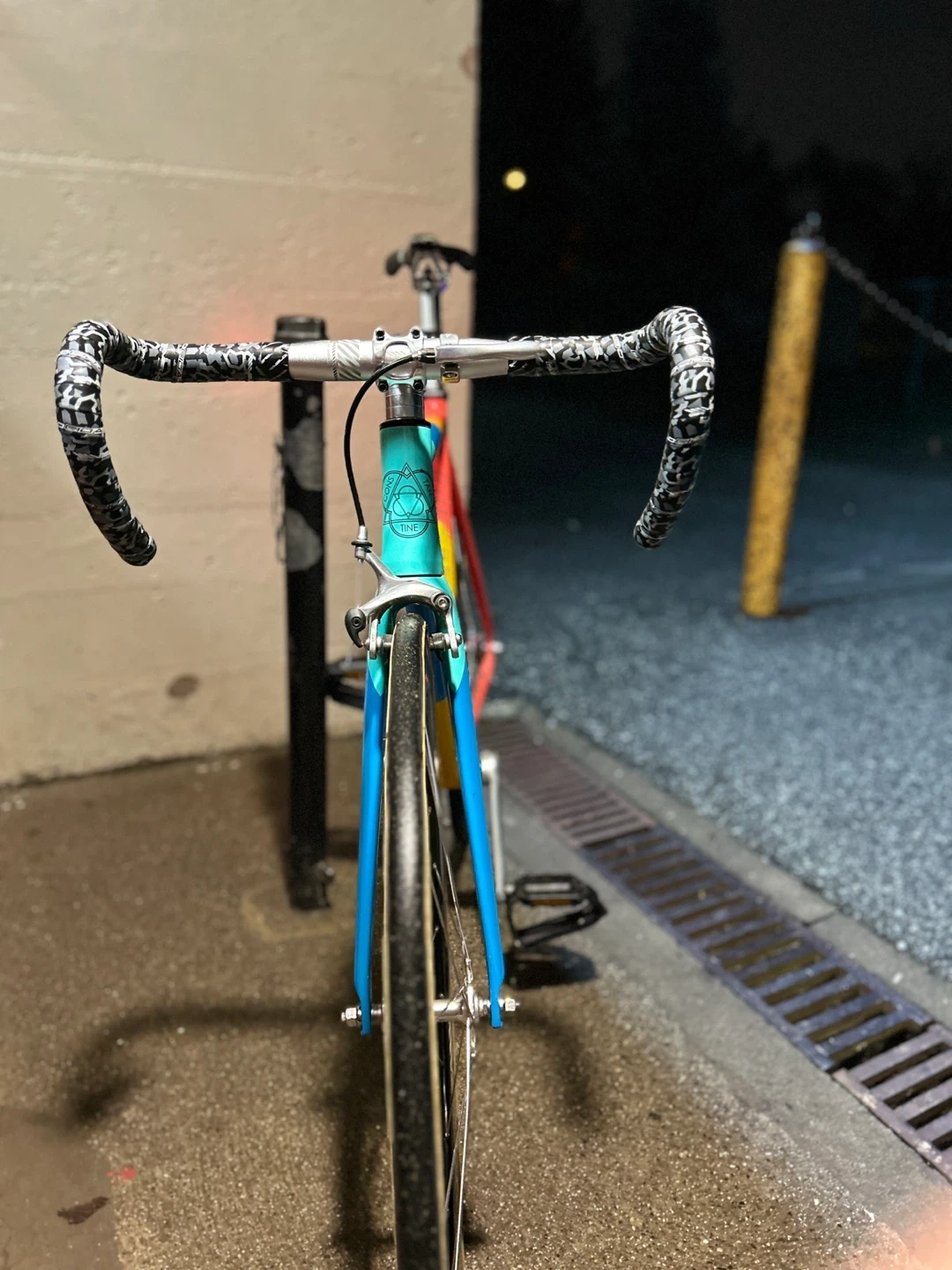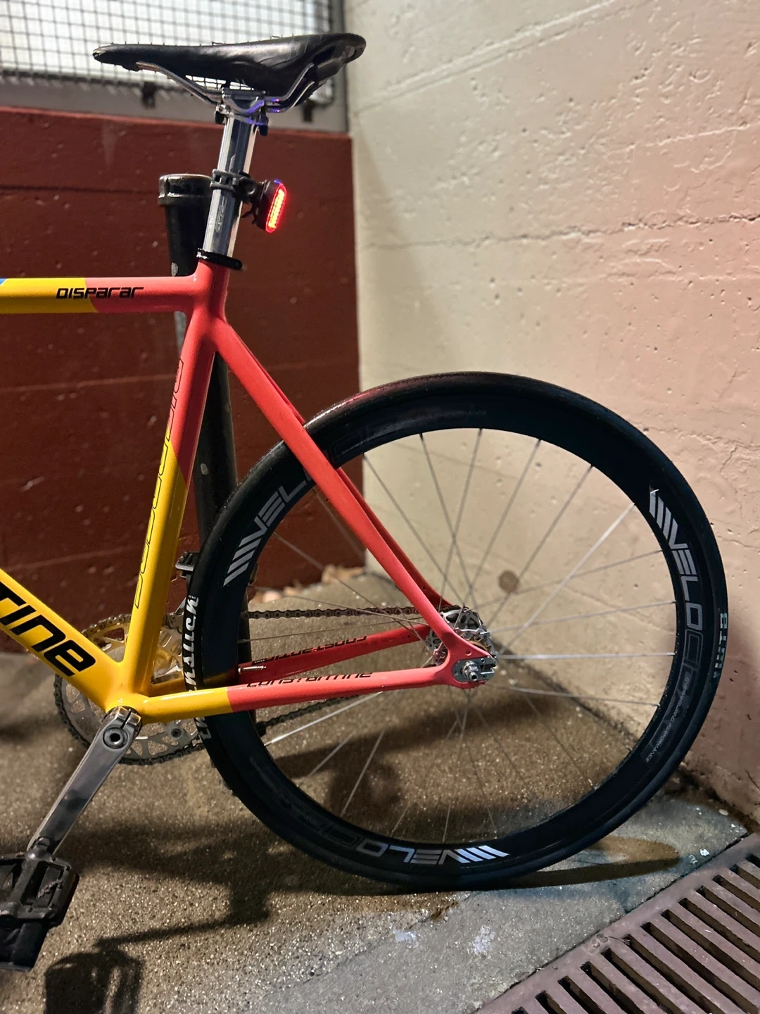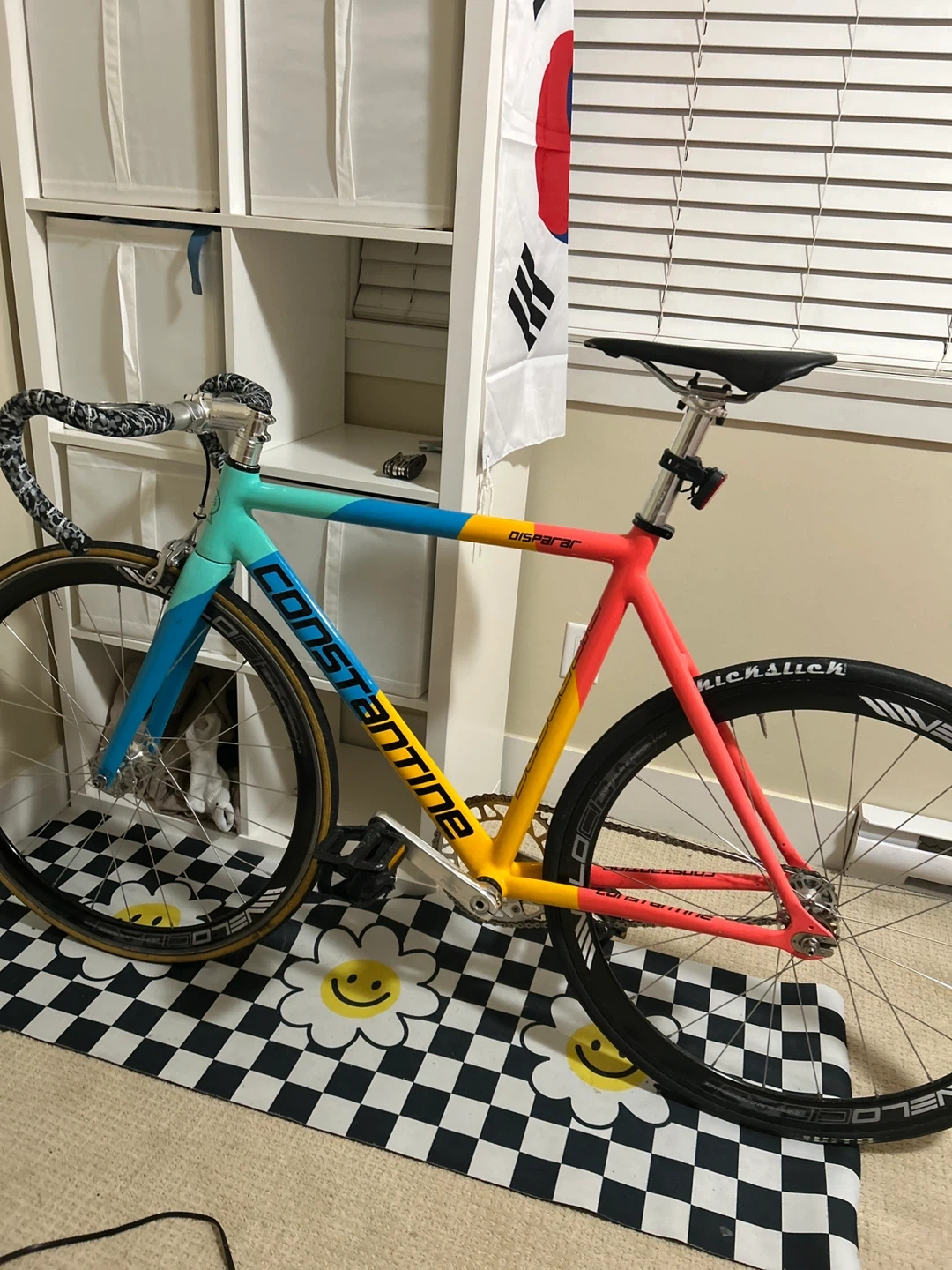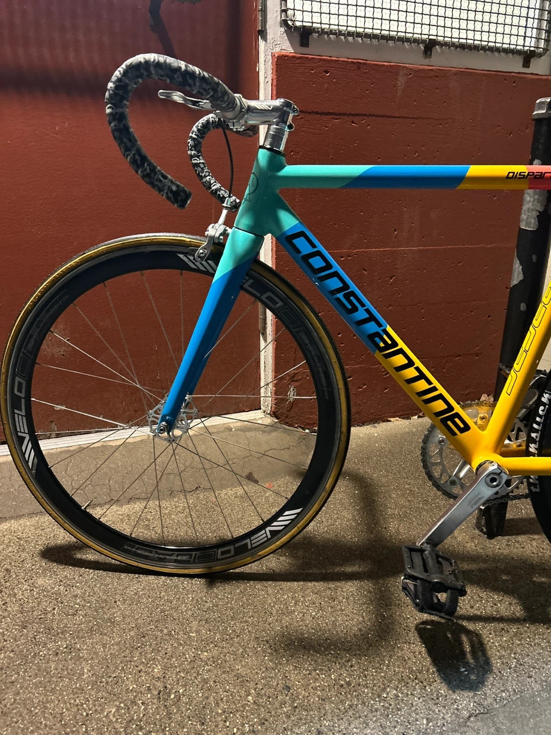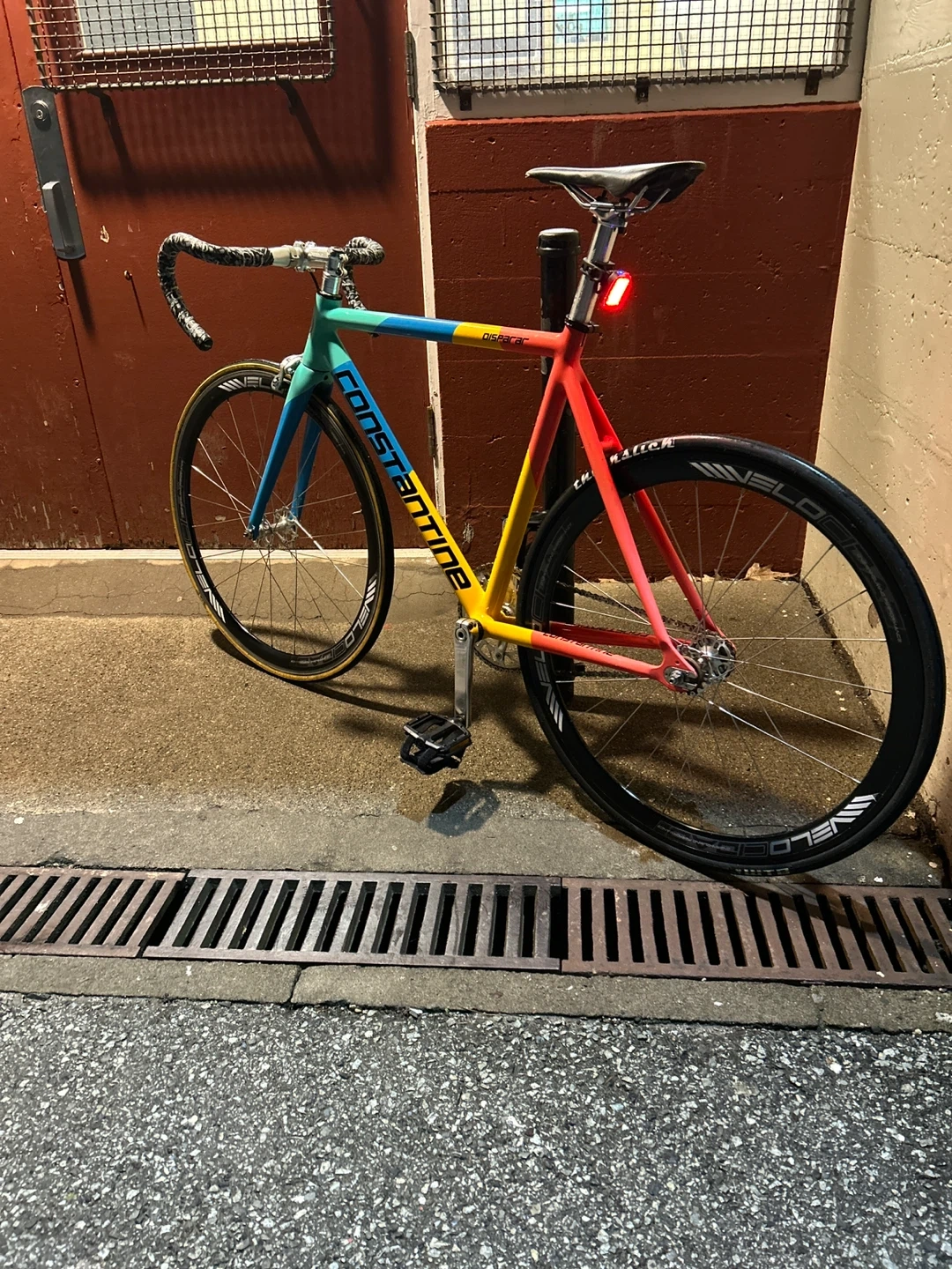 Selling a Constantine Disparar track bike. It has a unique and eye-catching colour scheme that fades from blue to red. The bike is in good condition and ready to ride!