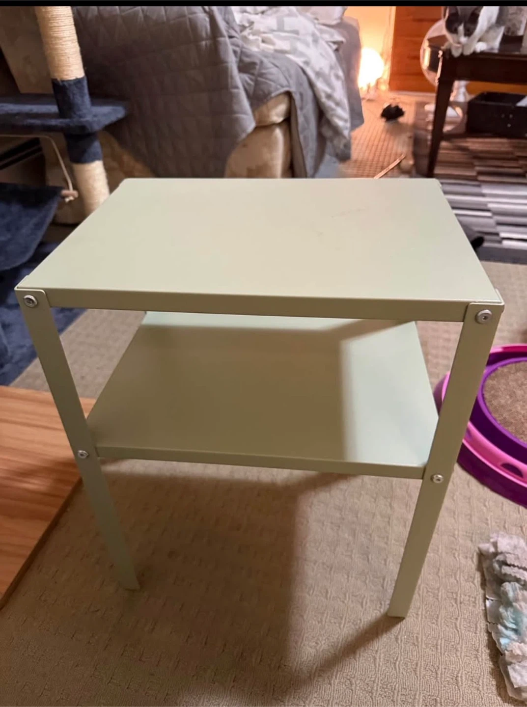 Selling a light green IKEA Lack side table. It's in great shape and ready for a new home. Perfect for a small space or as a bedside table!