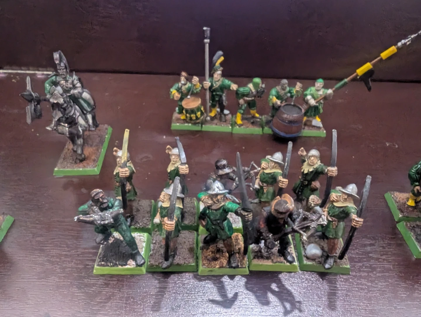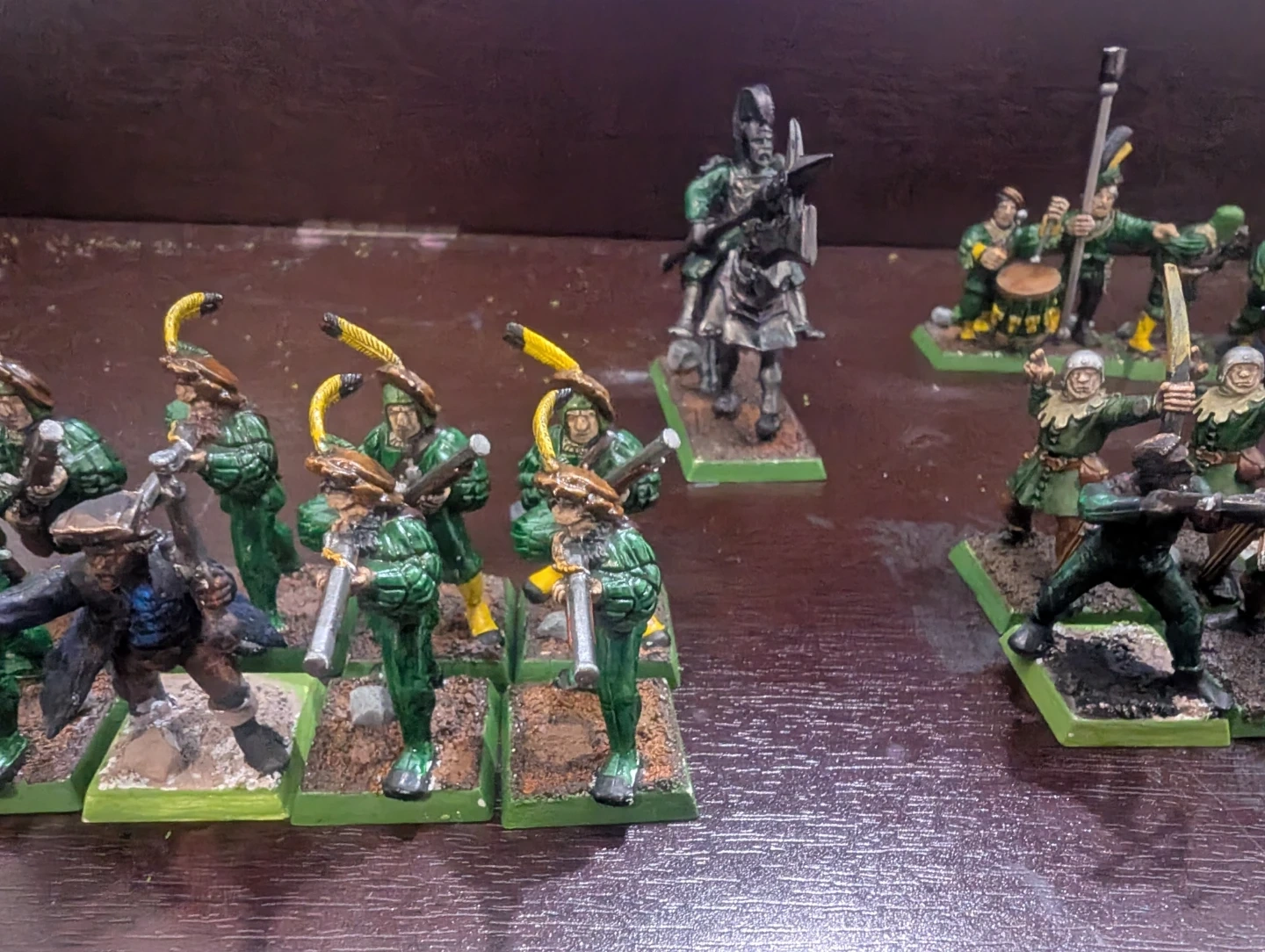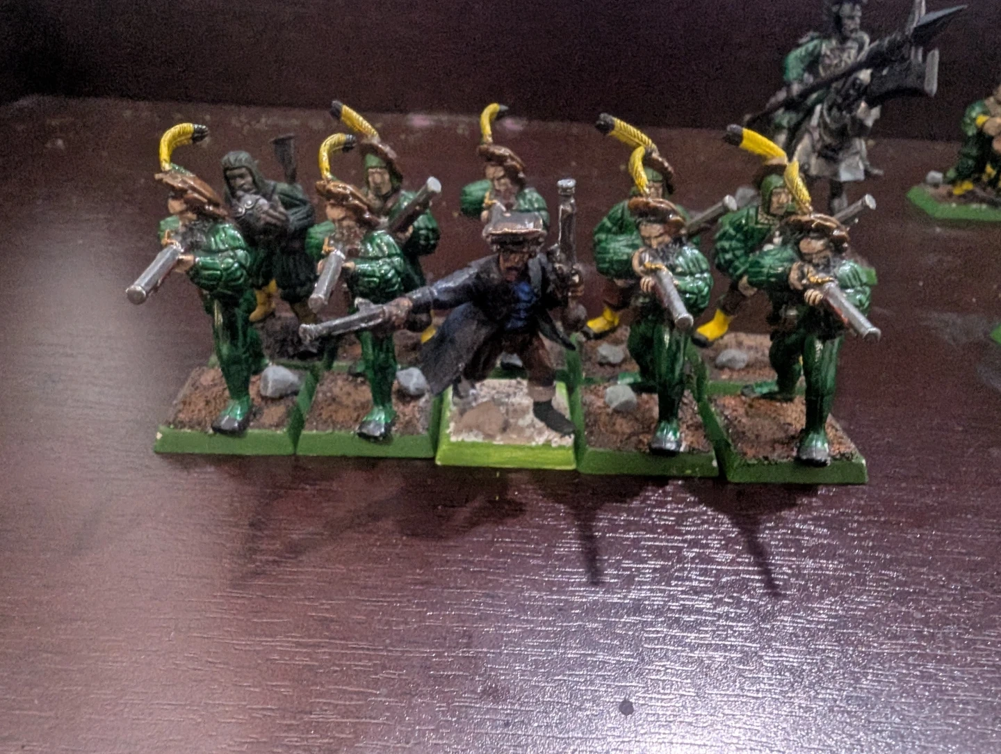 This army set includes an Empire General Knight of the realm, on his trusty steed. A pipe and drum band with company signaleers. 10 Riflemen, 10 Bowmen and 10 Spearmen.