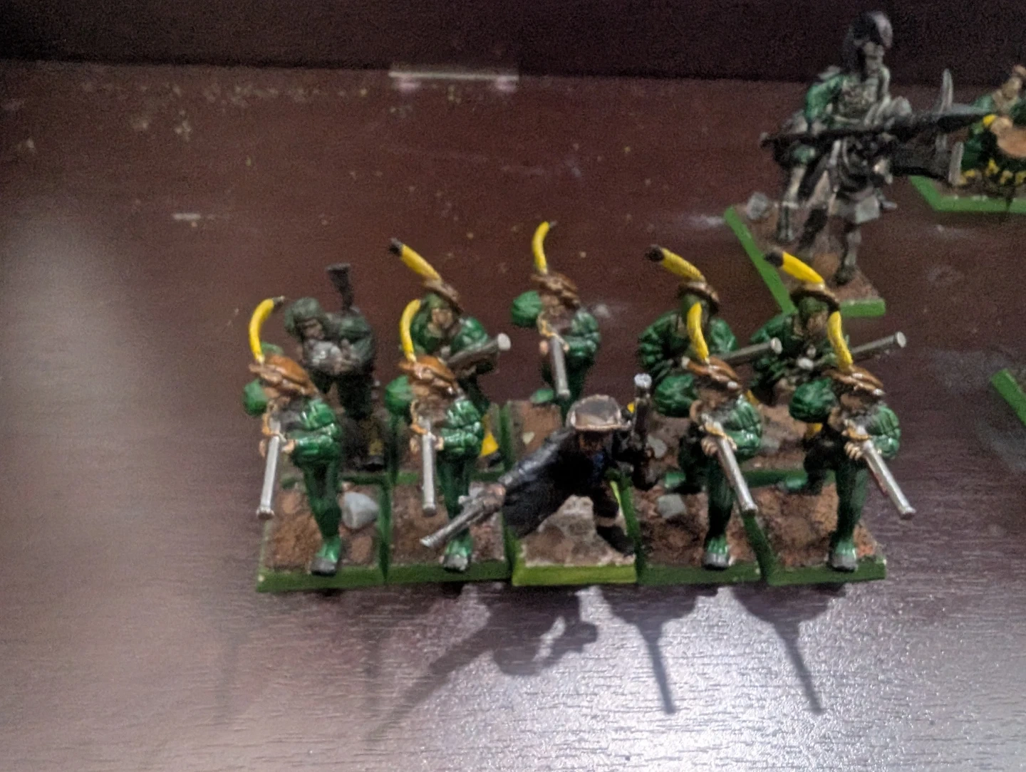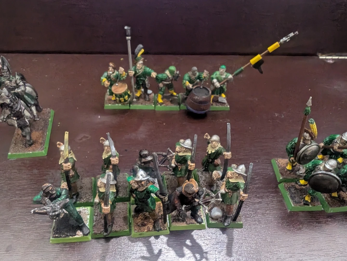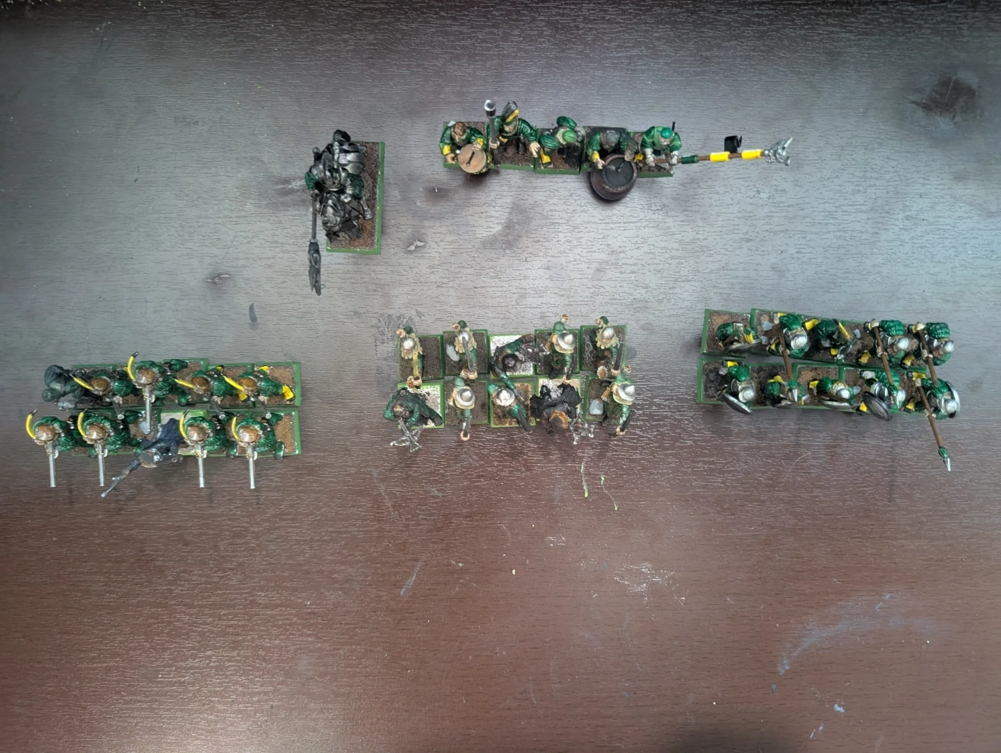 This army set includes an Empire General Knight of the realm, on his trusty steed. A pipe and drum band with company signaleers. 10 Riflemen, 10 Bowmen and 10 Spearmen.