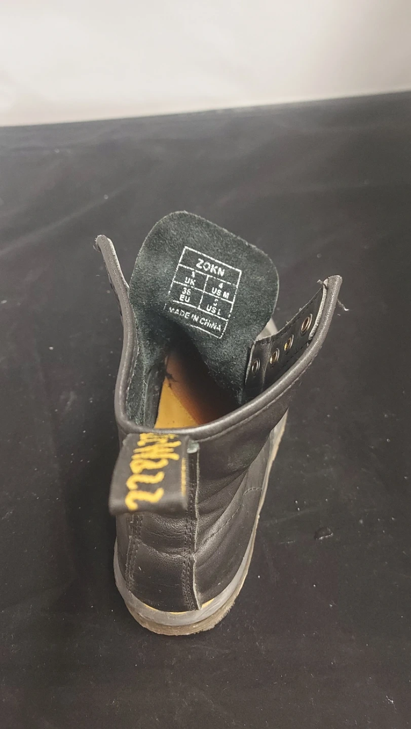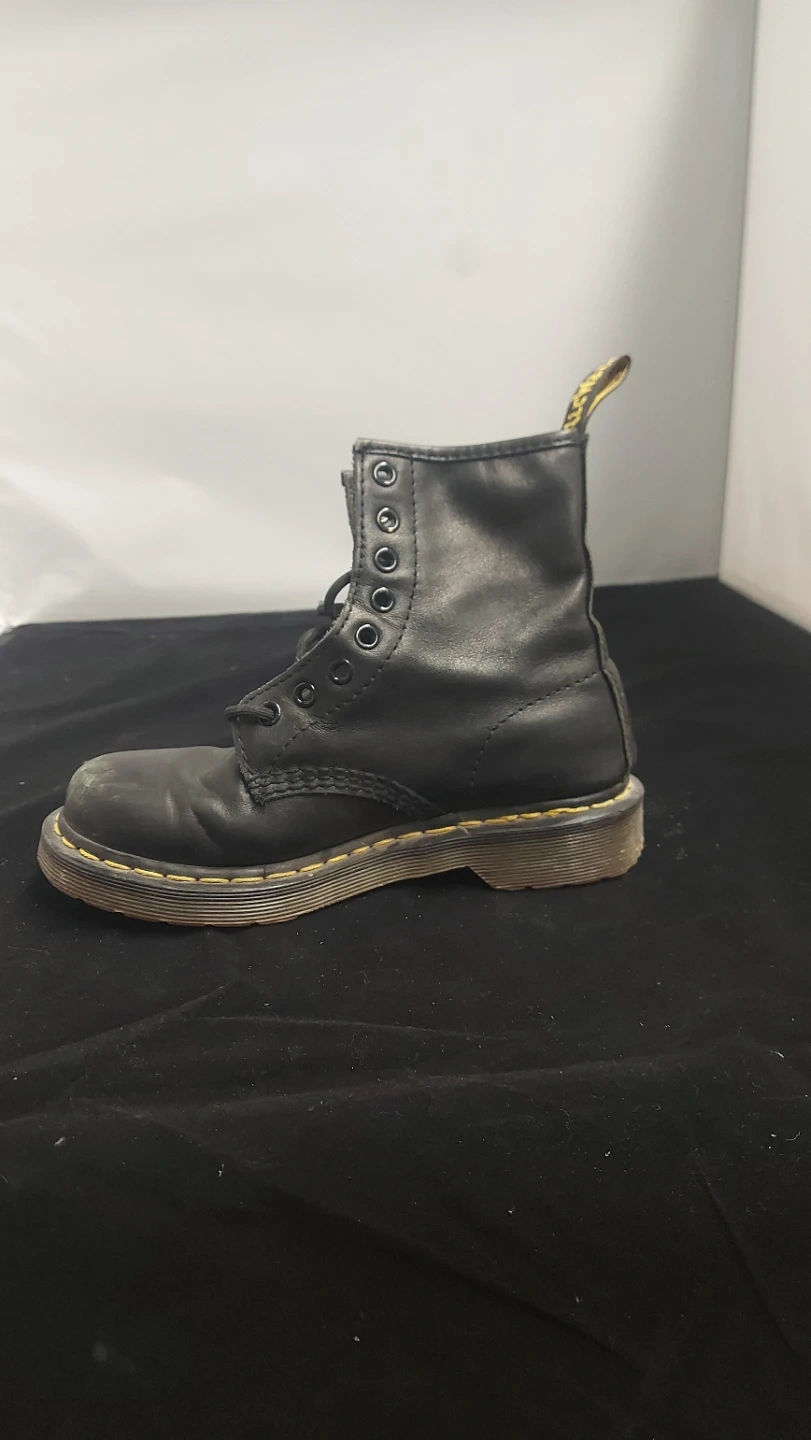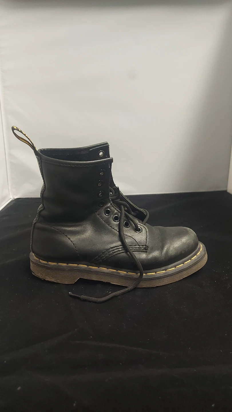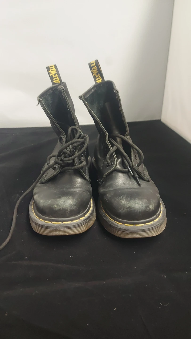 Selling a pair of Dr. Martens women's boots in black leather a US size 5. 112 pre owened & willing to negotiate. These boots show some signs of wear, but still have lots of life left in them!