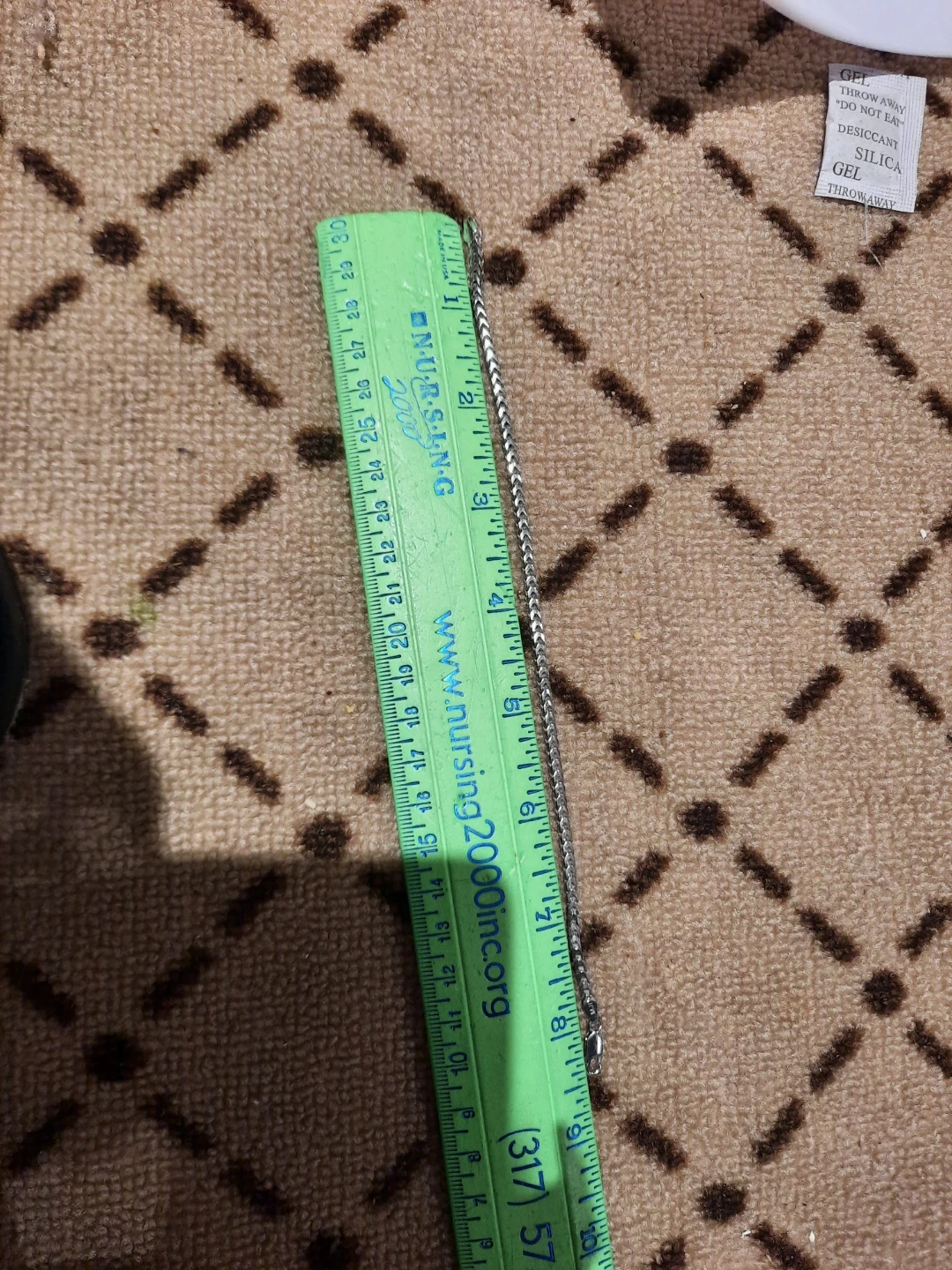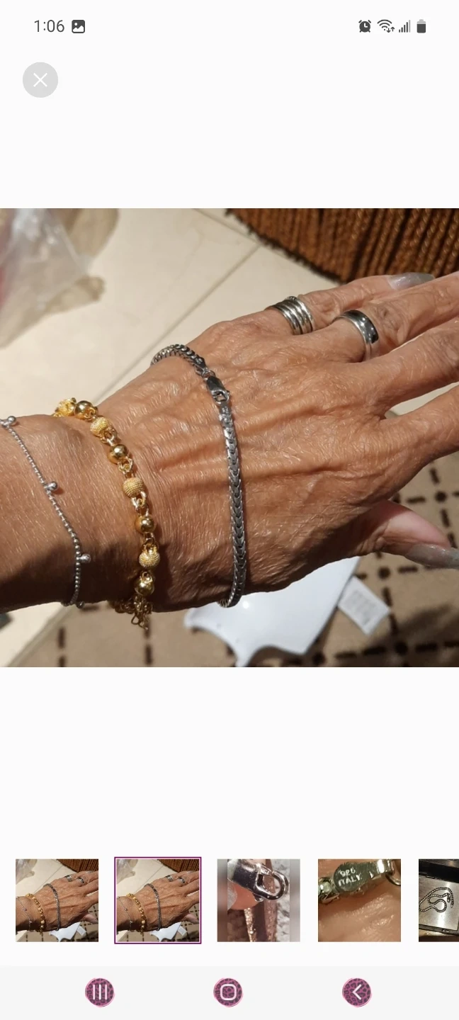 Authentic genuine solid sterling silver rhodium plated, as to never tarnish. 8.5" for 8.25" wear