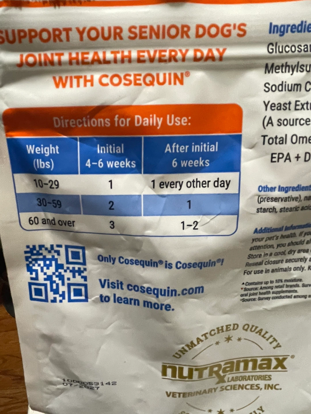 Free remaining bag of Cosequin Joint Health Supplement for senior dogs! He crossed the π bridge and we no longer need these.