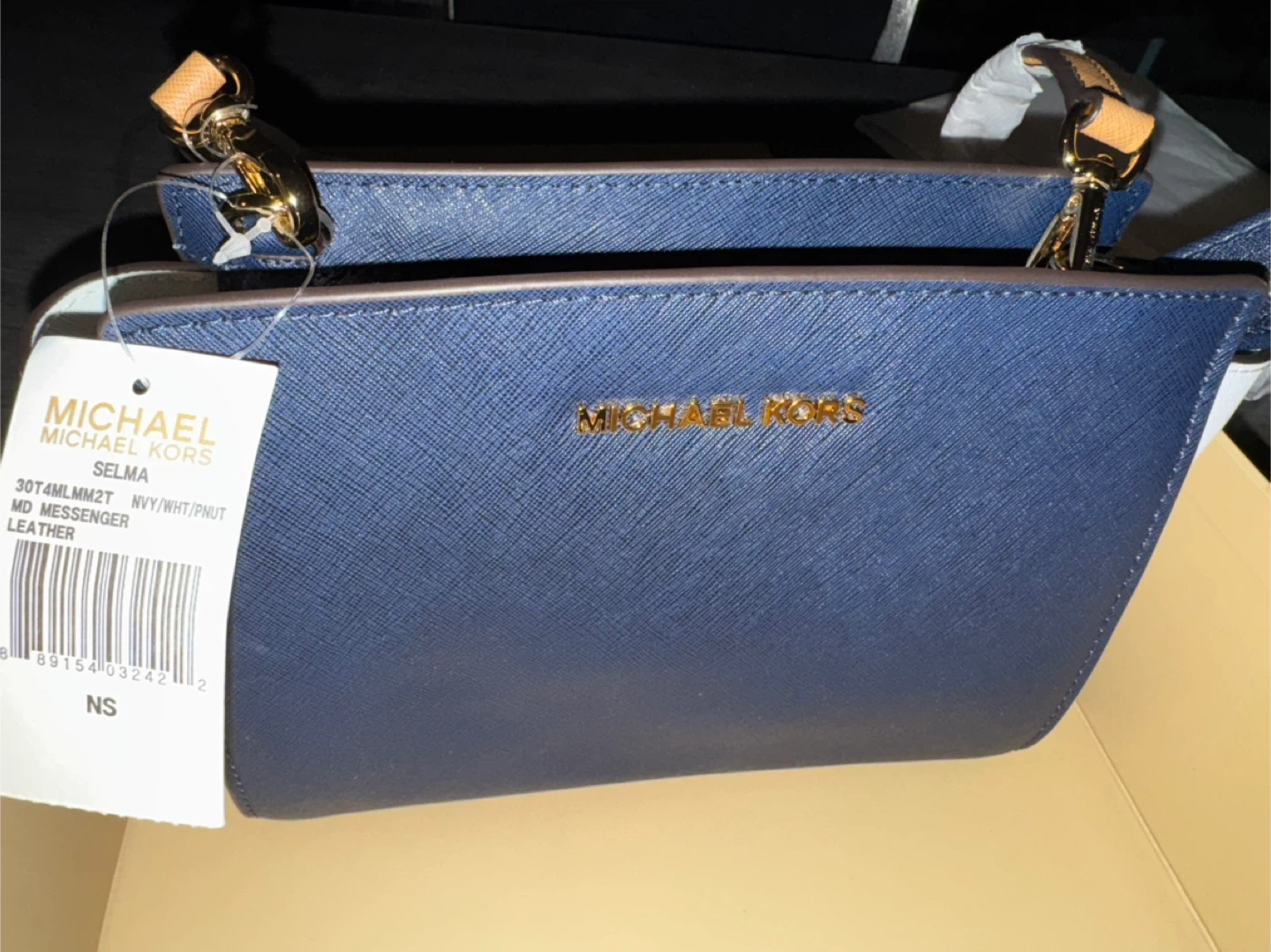 New Michael Kors Selma MD Messenger Leather Navy/White