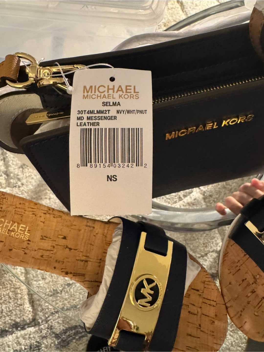 This is a brand new Michael Kors Selma MD Messenger bag in a beautiful navy and white leather! It comes with the original box and packaging. This stylish bag is perfect for everyday use with matching Michael Kors white/blue leather slip on with gold hardware size 8M brand new.
