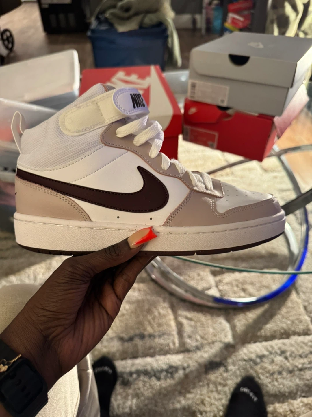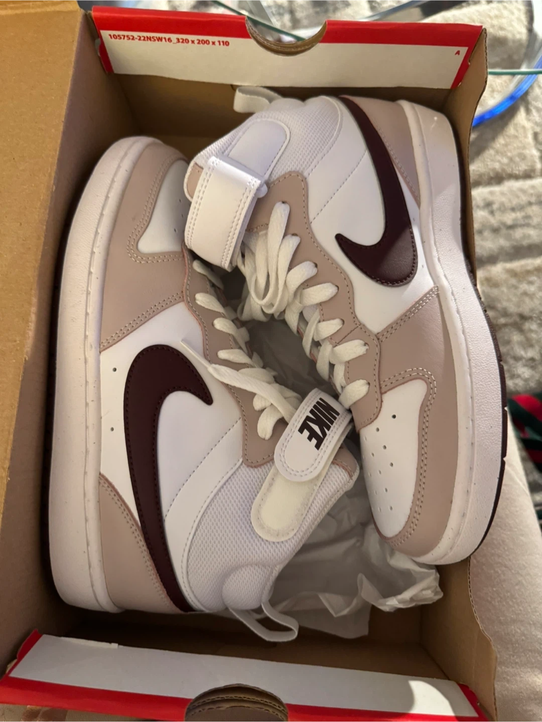 Selling a pair of Nike Court Borough Mid 2 (GS) sneakers in size 6Y. These are Brand new and come with the original box! The color is white/burgundy crush unisex.
