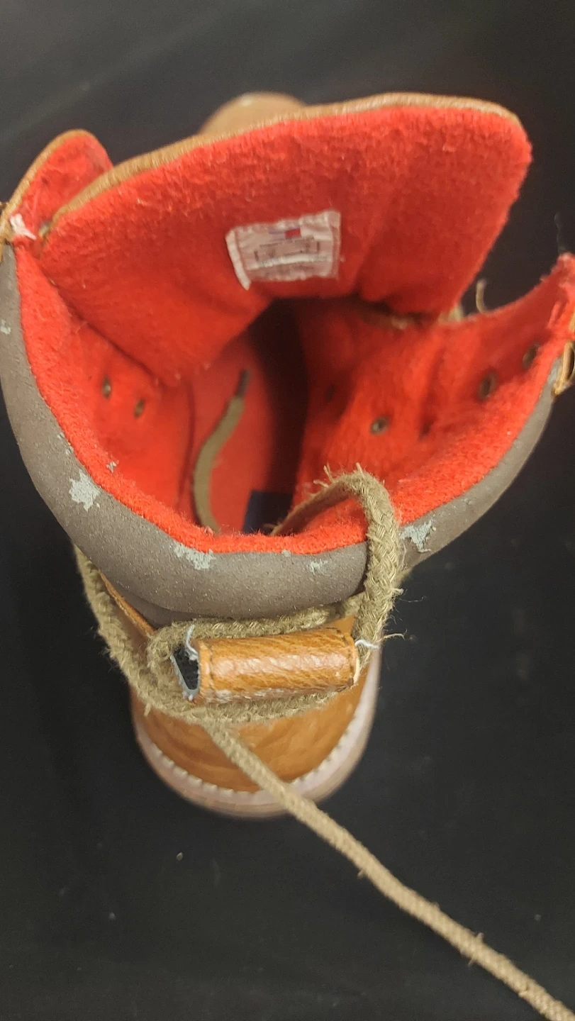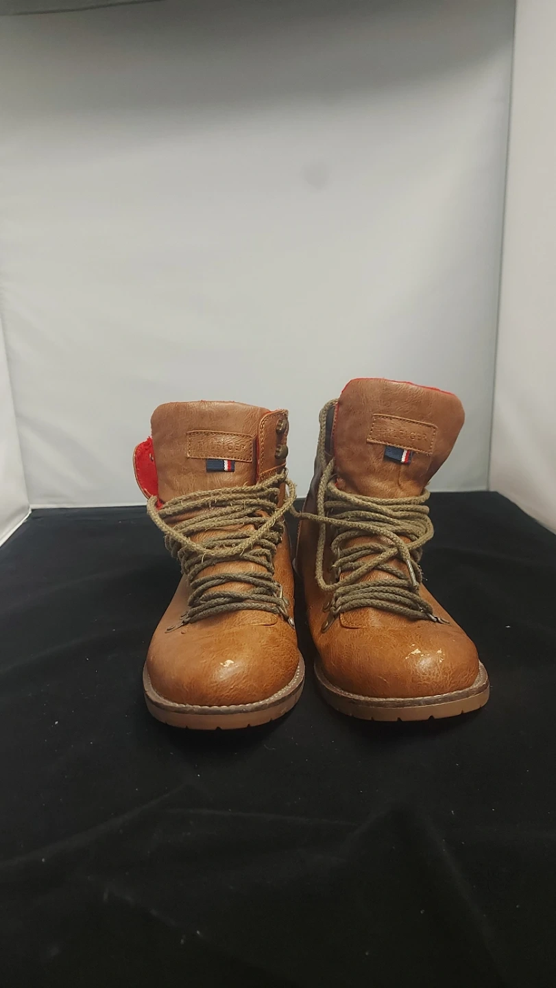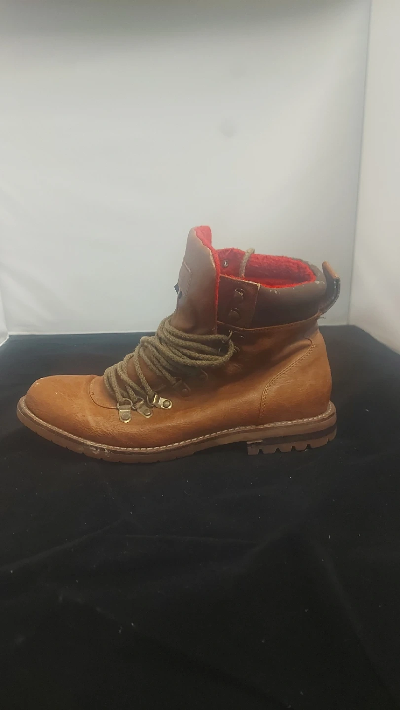 These Tommy Hilfiger brown leather boots size 9. Pre owned 124 & willing to negotiate. A stylish addition to any wardrobe! They are made of brown leather and feature a lace-up design. They show some signs of wear, but are still in good condition and ready for new adventures