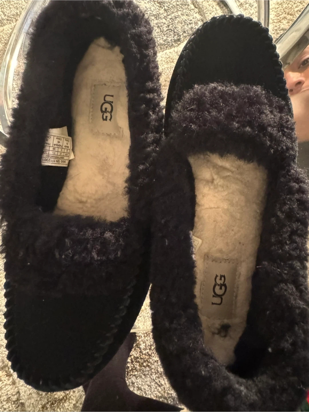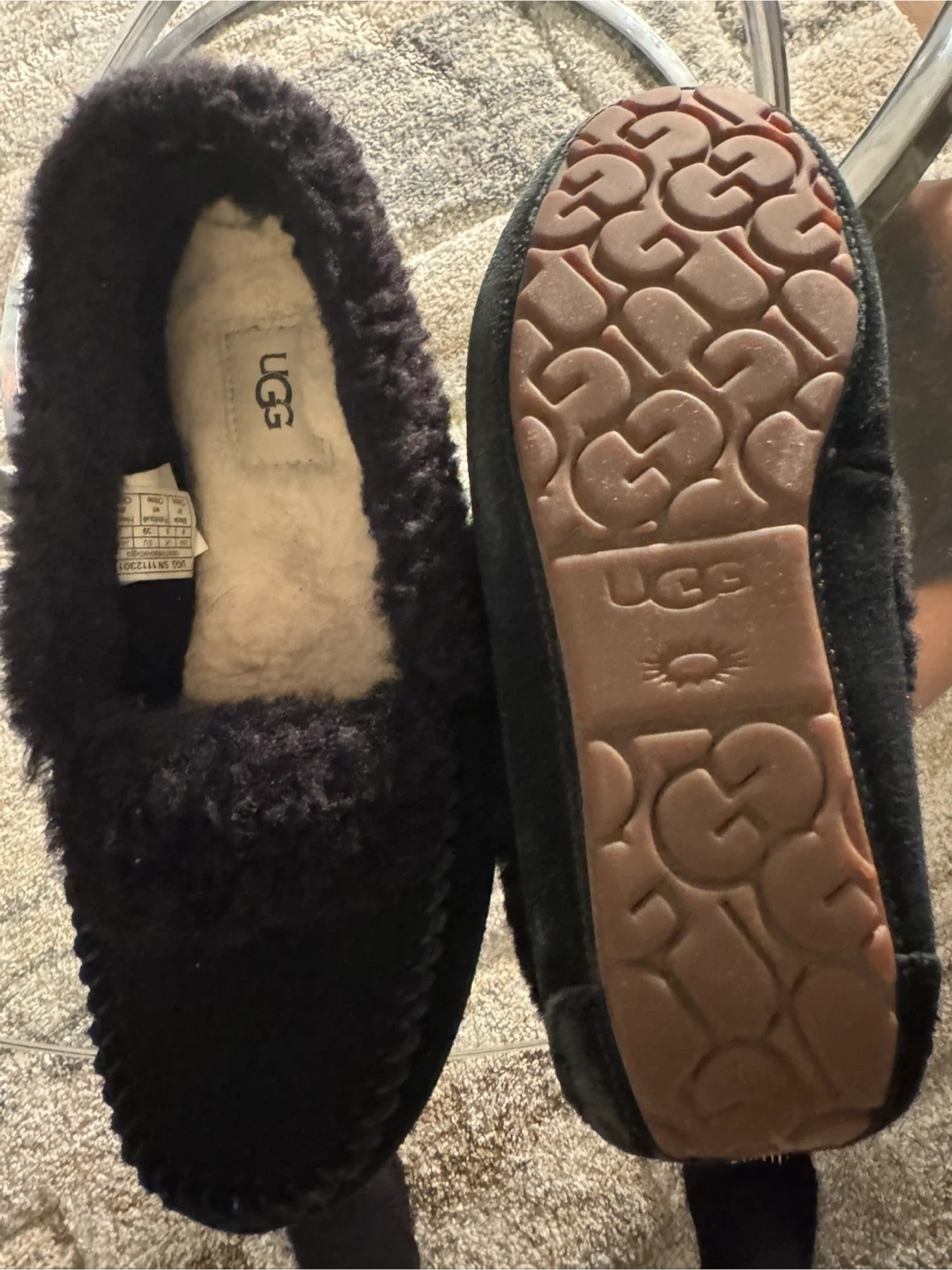 Selling a pair of UGG Ansley slippers in women's size 8. They're a cozy and comfortable water-resistant slipper, perfect for wearing around the house or for quick errands. The slippers are black and in great condition!
