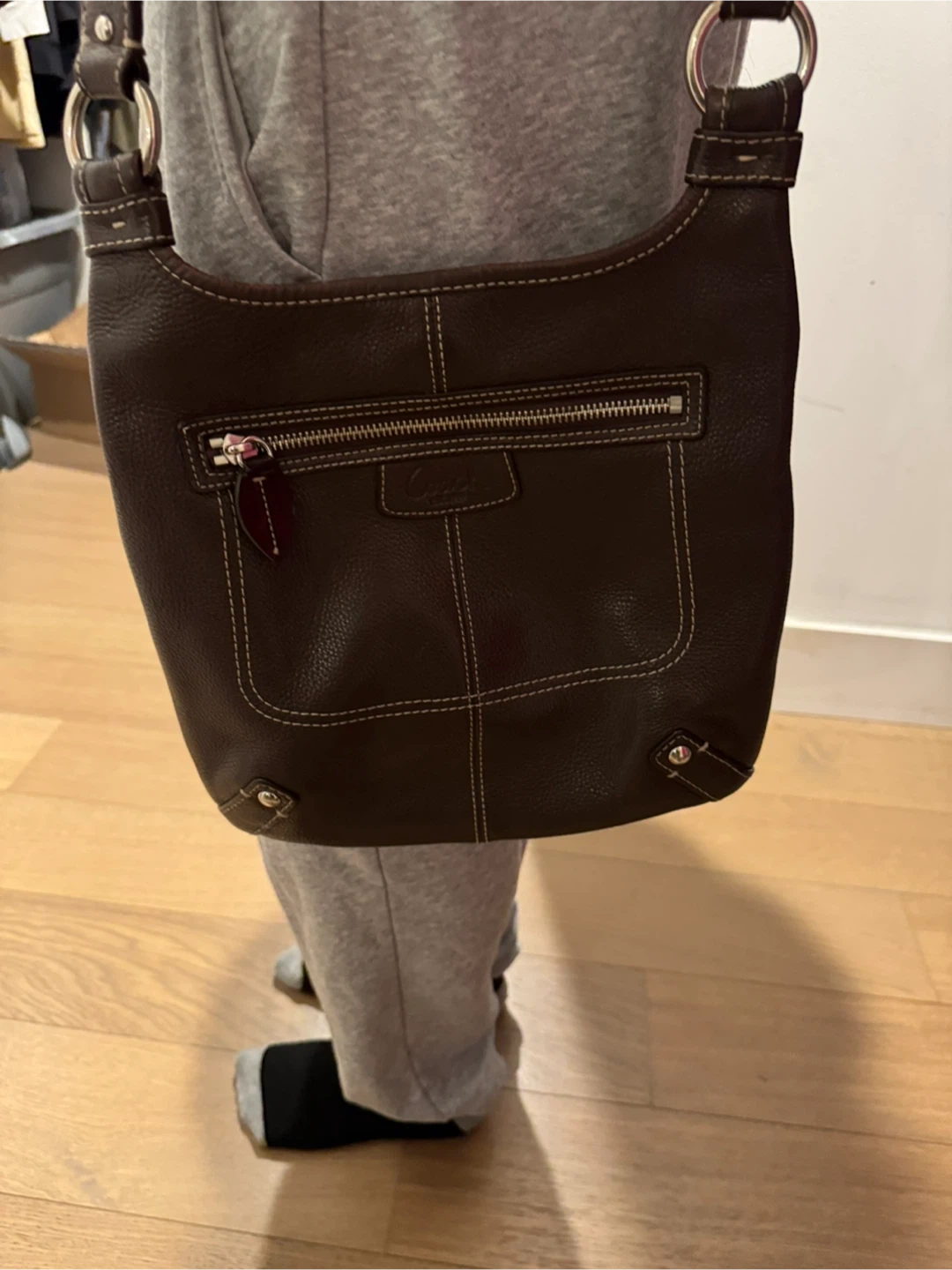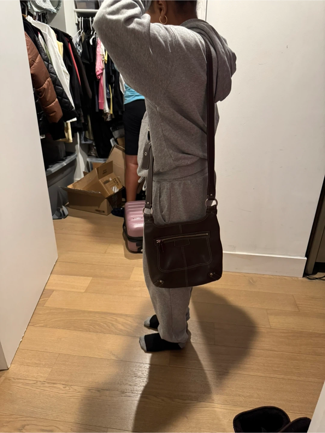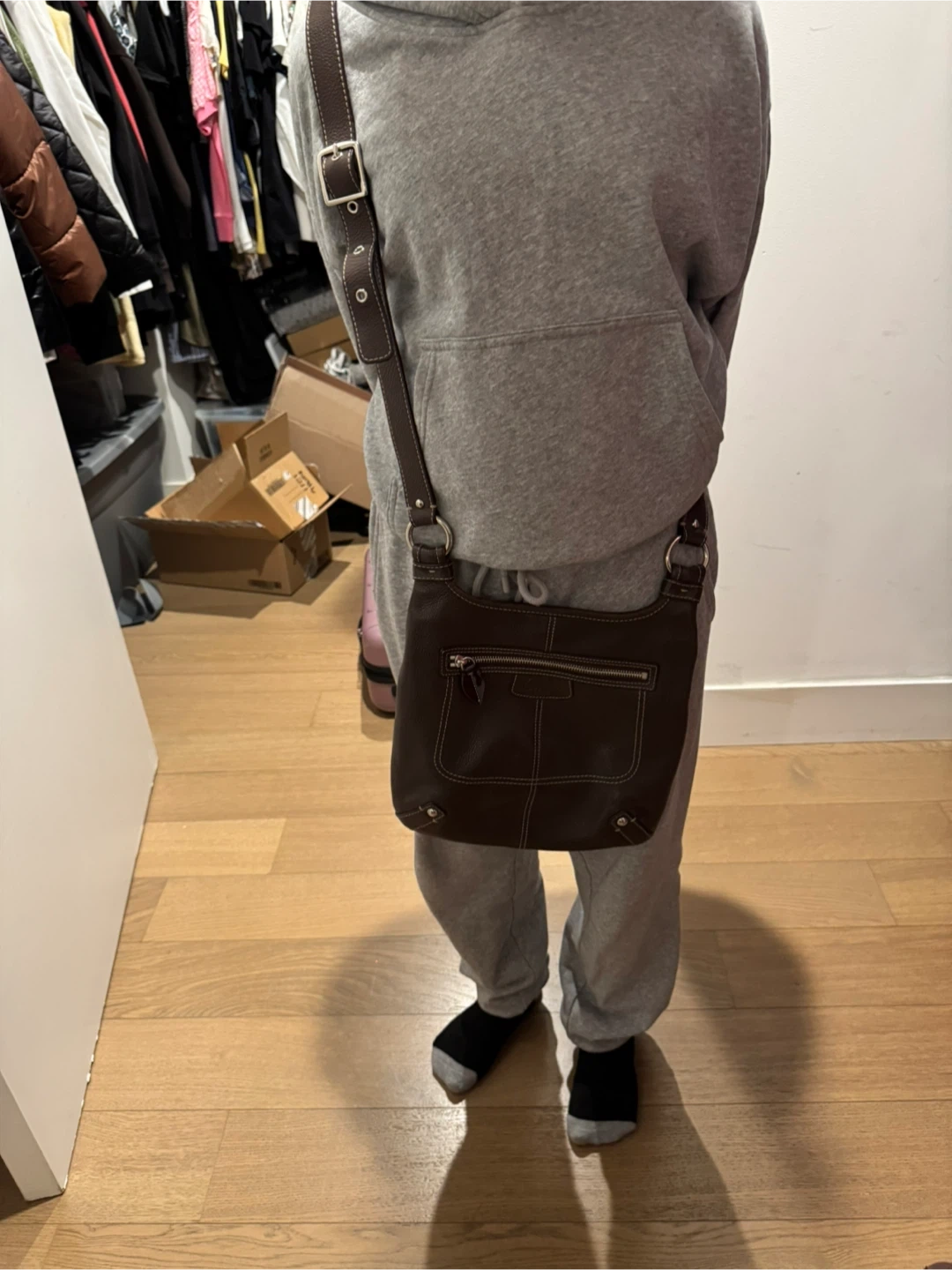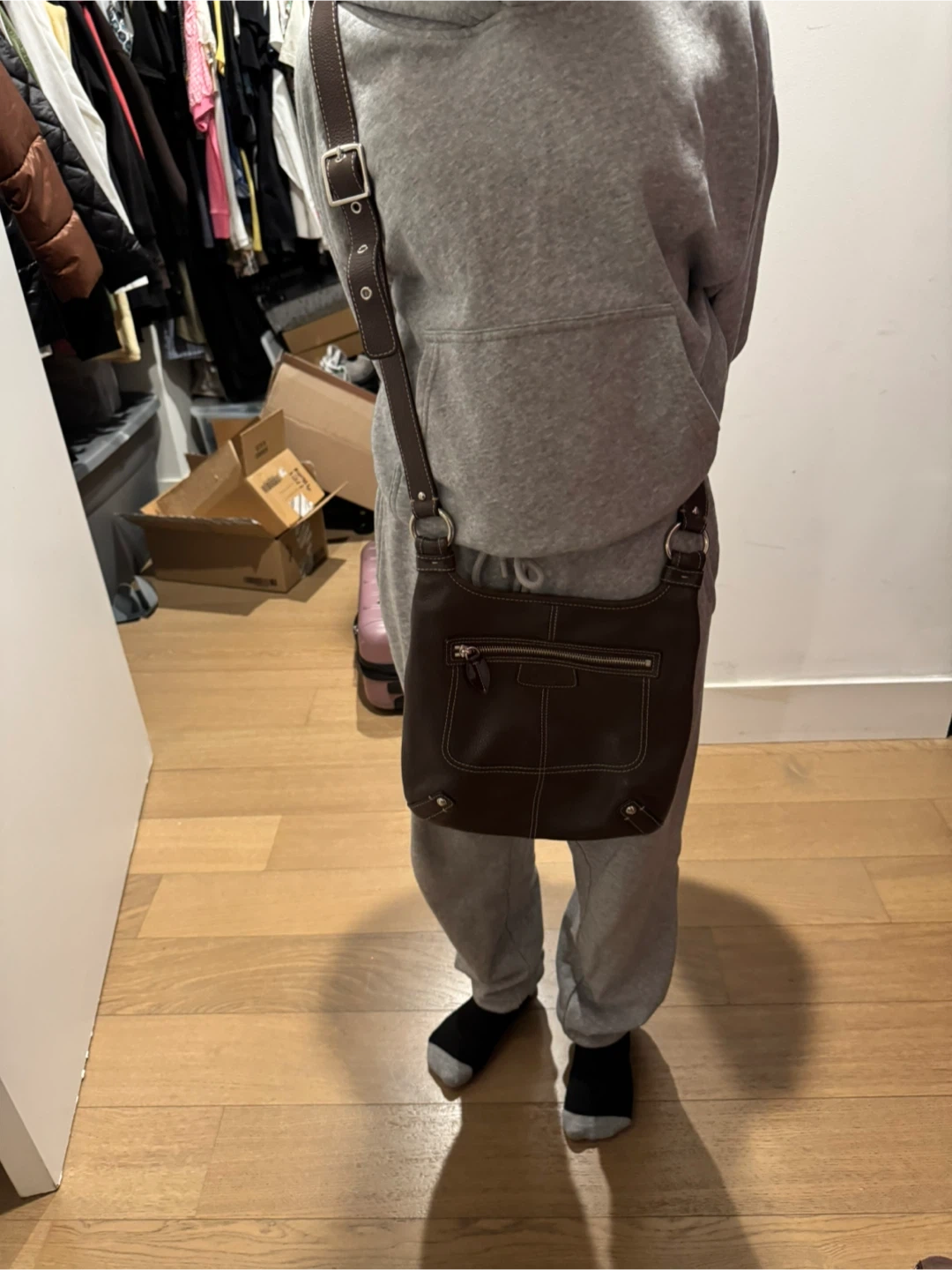 Selling a Coach brown leather crossbody bag. It's in great condition and perfect for everyday use! The bag features a zip top closure and an adjustable strap.