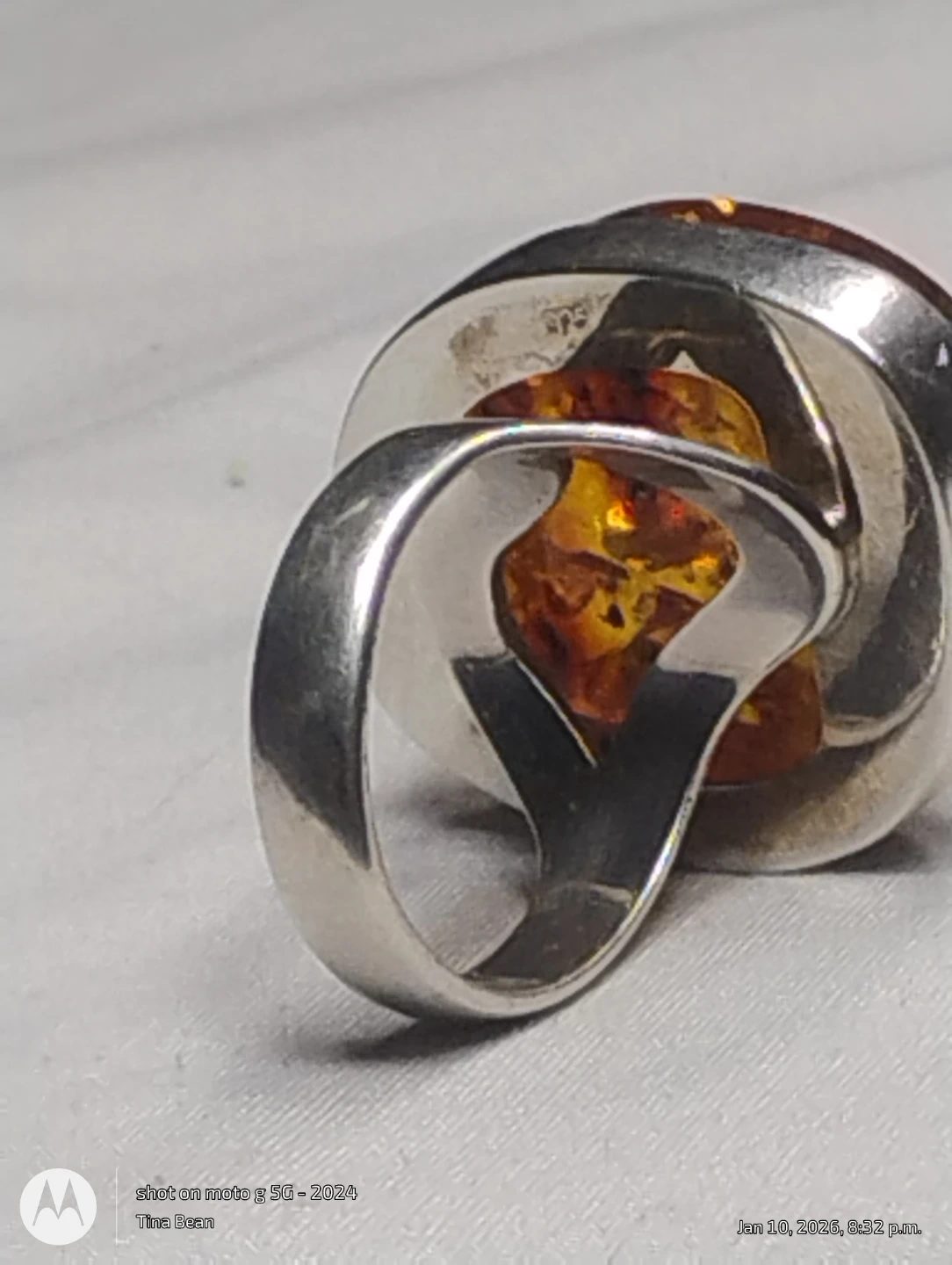 Amber & Sterling Silver Ring