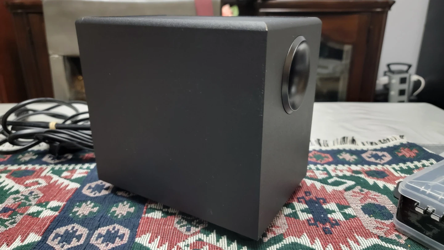 Excellent condition speaker system with zero issues. Great sound quality with enhanced bass for music, movies, and gaming.