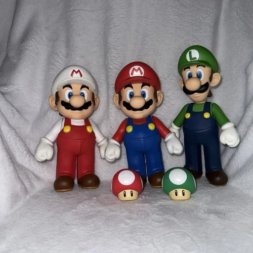 Item includes big Luigi figure big Mario figure big fire Mario figure and two big mushroom figures from Van Presto’s prize a lot. The blue Yoshi shown in the photo is just used for a size comparison not included within the listing! If you have any questions, please feel free to reach out. Also look at my other listings for video game items! Blue Yoshi not included!!!