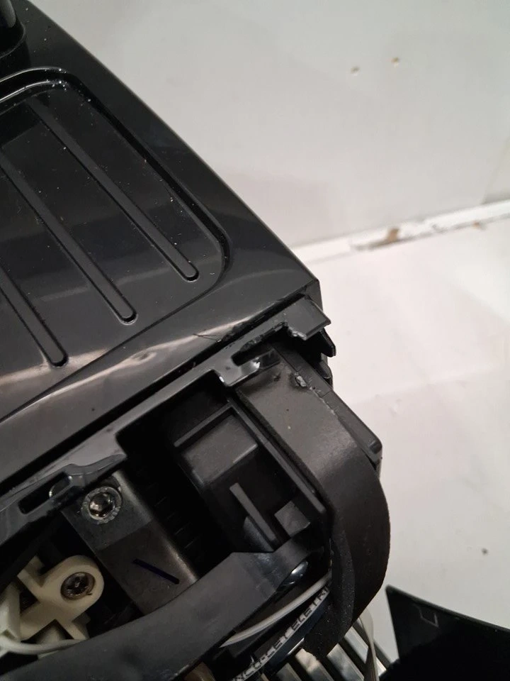 + Front panel is broken off, one of the clips is mangled and will pop off with light pressure +