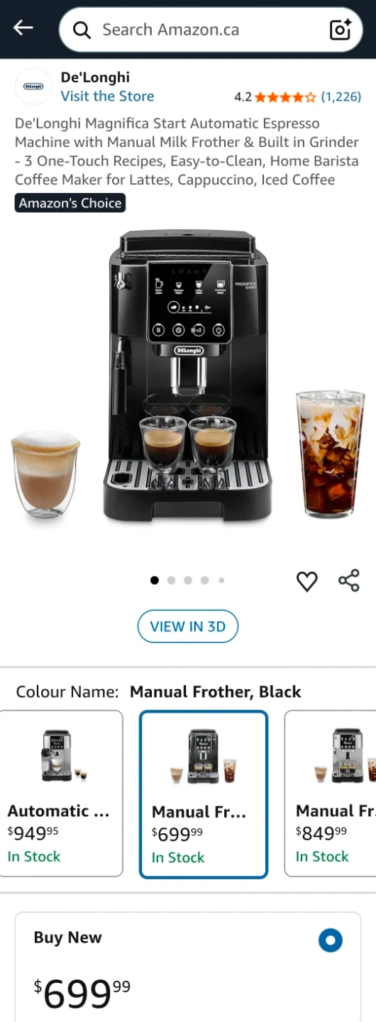 Brew exceptional espresso, coffee, or americano with this De'Longhi Magnifica Start automatic espresso machine featuring a manual milk frother and built-in grinder.
