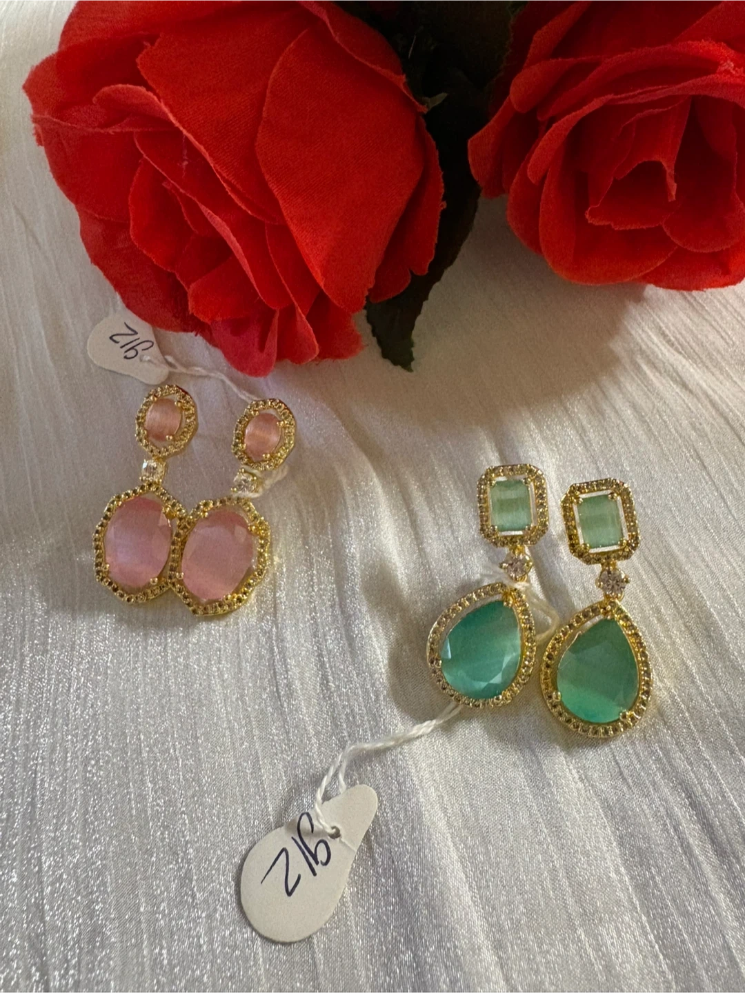 Traditional earrings- Gold and pink & Green and pink (10$ each)