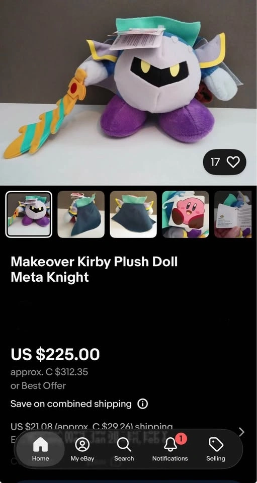 Buy & SellRare Kirby Meta KNight Plush Toy Sanei Boeki with Sword and tagsRare Kirby Meta KNight Plush Toy Sanei Boeki with Sword and tags$30Let me know if you're interested!WHERE TO MEETHomeView MapSELLERKateWilloughby211 review0 chats·0 favorites·8 viewsSEND CHAT TO SELLERHi Kate! I’m interested in your listing.Hi Kate! I’m interested in your listing.Get the Karrot app to chatSign In to chat