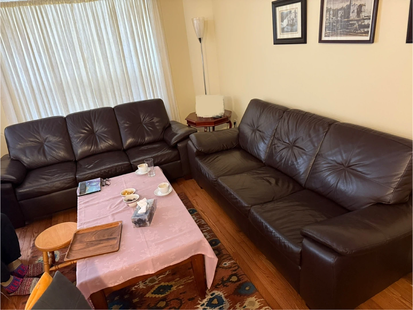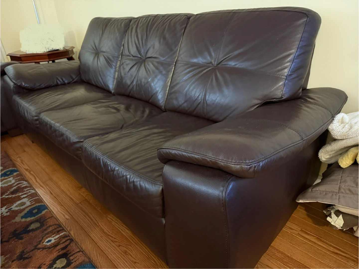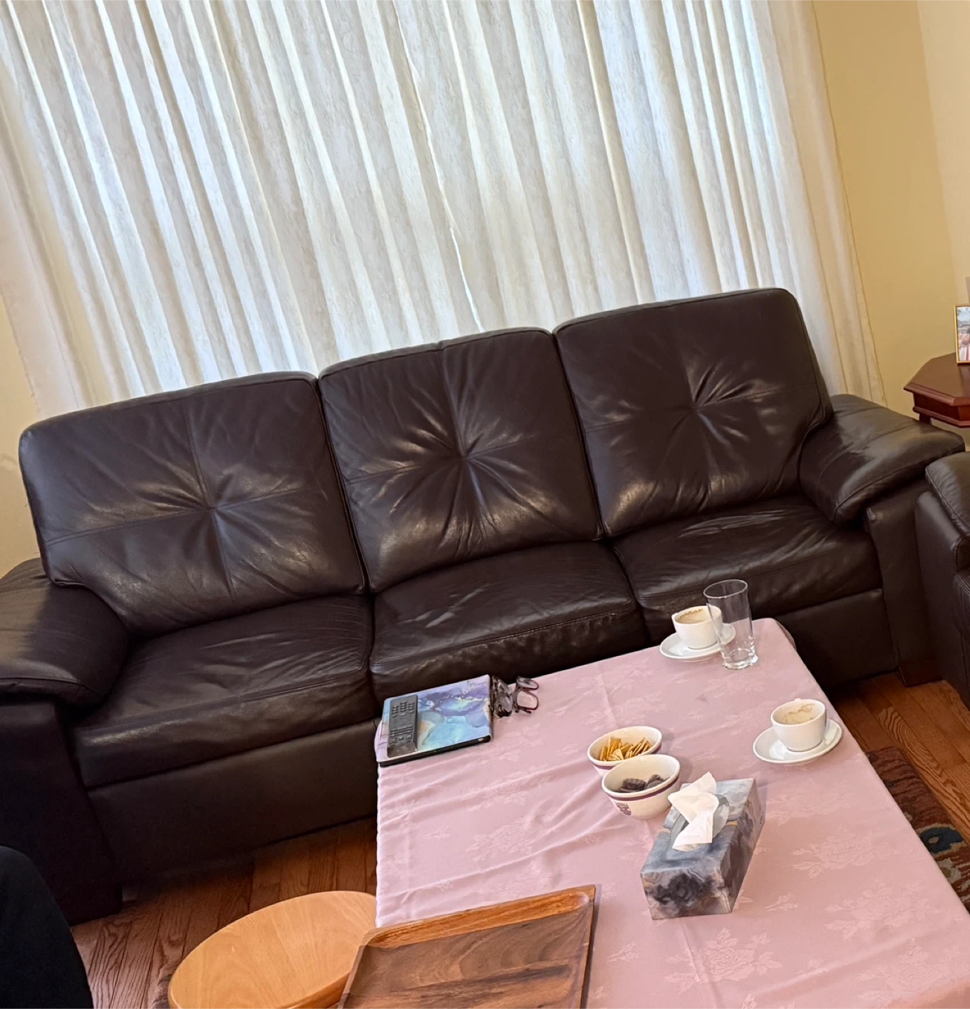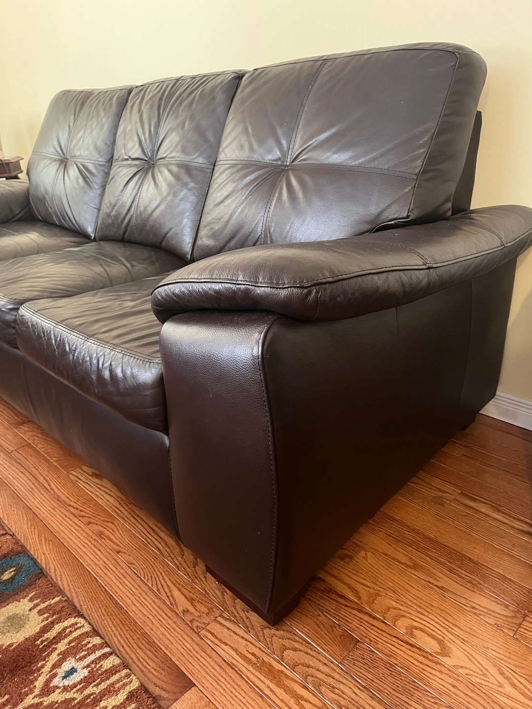 Dark brown three-seater leather sofas In great condition, no scratches, no damage