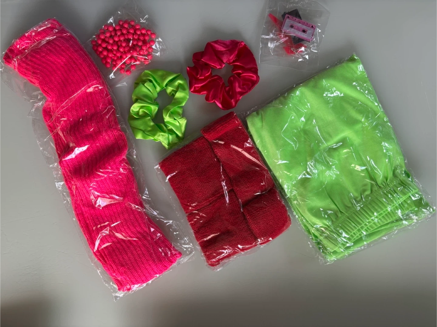 20Selling a fun collection of 80s-themed accessories, all brand new and still in their original packaging! This bundle includes vibrant leg warmers, scrunchies, beaded necklaces, and a cassette tape and lightning bolt earrings. Perfect for adding a pop of retro style to your look! If you would like to see the anything out of the package just let me know!