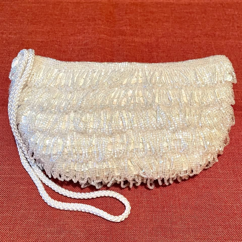 93Elegant 1980s Towanny wristlet featuring pearl white beads and sequins that sparkle beautifully. Perfect for evening events or adding a retro touch to your outfit. • Year: 1980s • YKK zipper • 1 interior pocket • Wristlet strap Condition: Never used, excellent like-new condition.