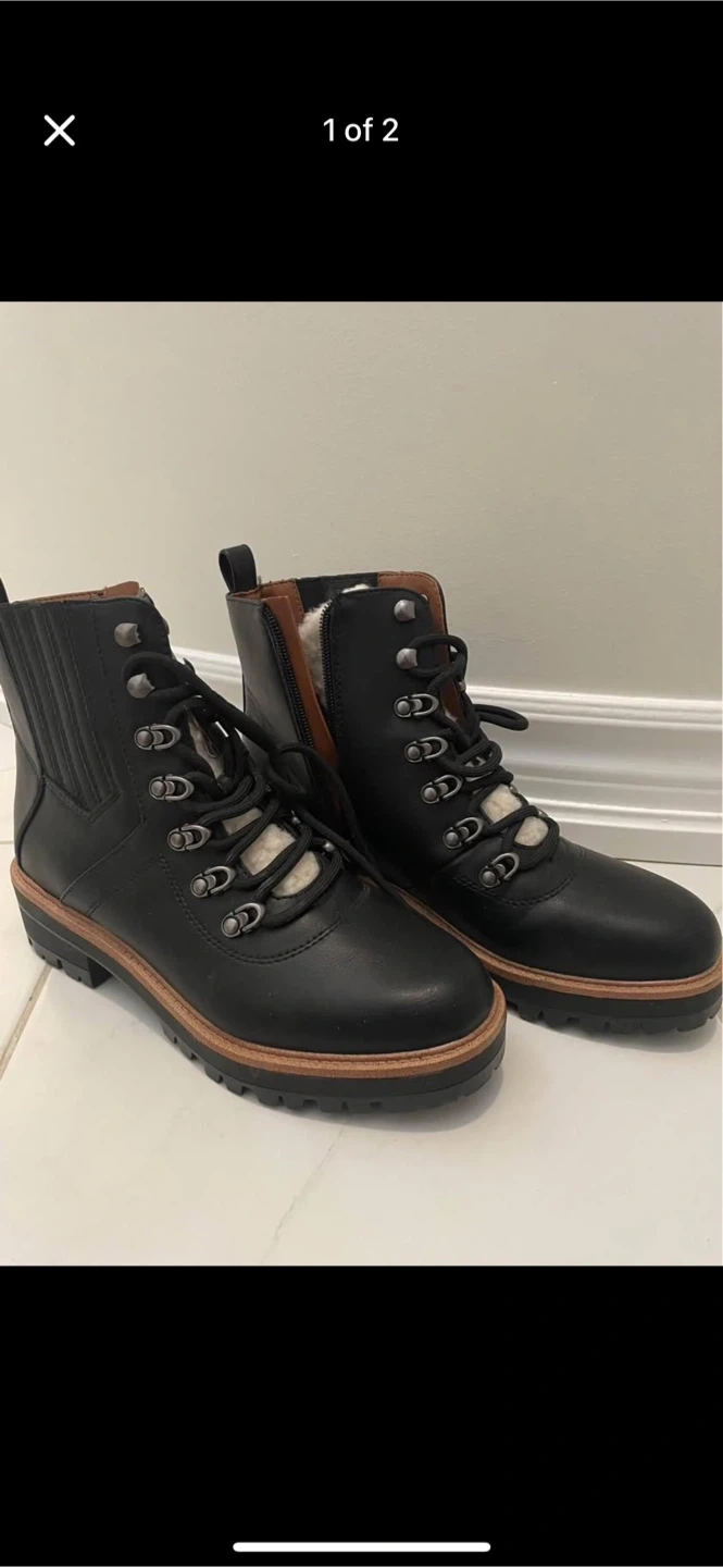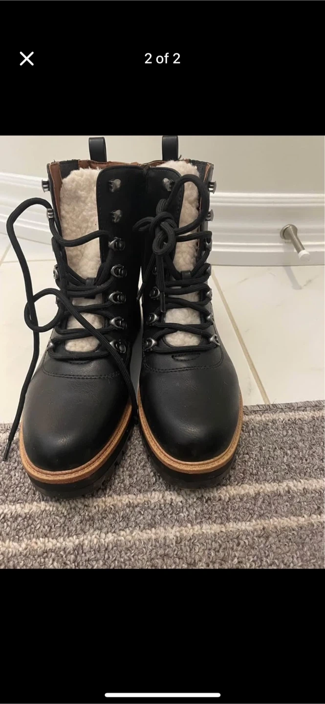 Selling a pair of American Eagle women's boots in size 8. The boots are black with a lace-up design. These are in great condition and ready for the fall and winter weather! Only worn once.