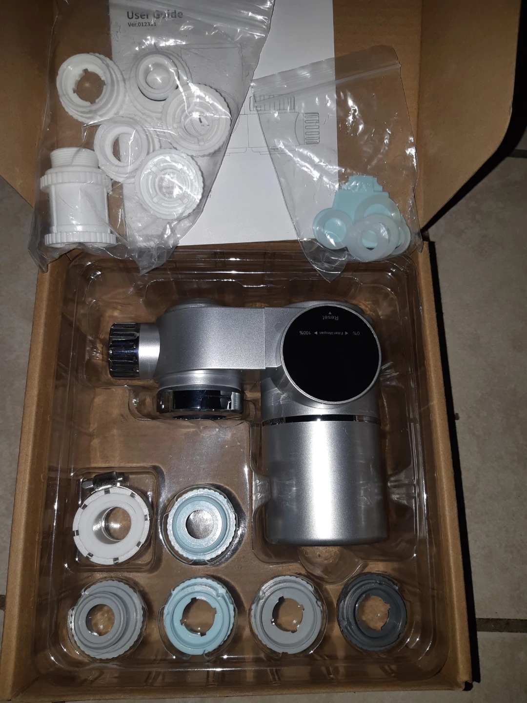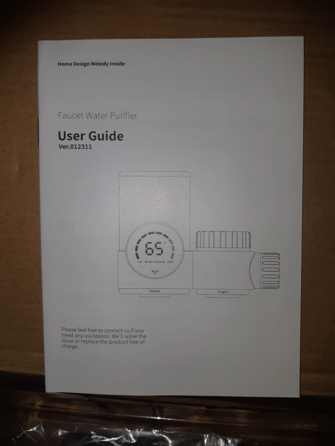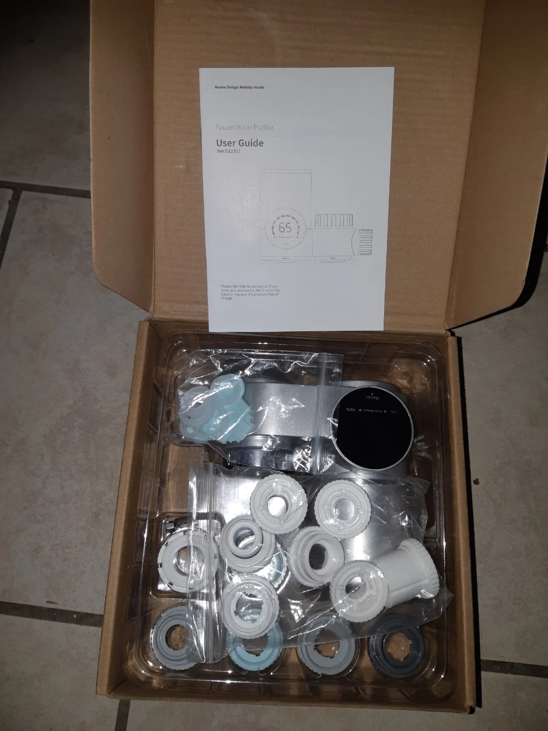 Faucet water purifier by Home Design Melody Inside. Includes the user guide and all components in the original box. Ver.012311