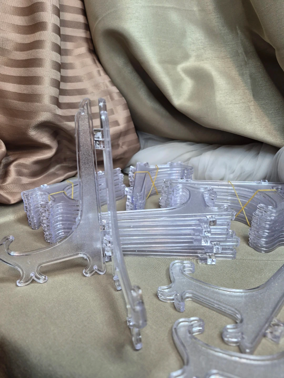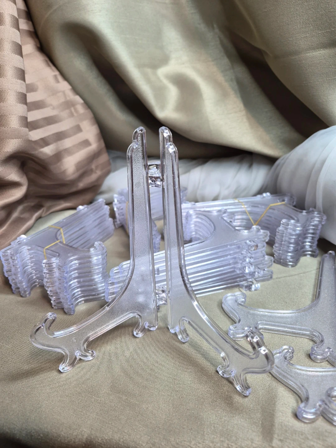 Lot of 17 Brand New Leftovers 6" Clear Plastic Plate Display etc. Holders selling all together Please See all pictures