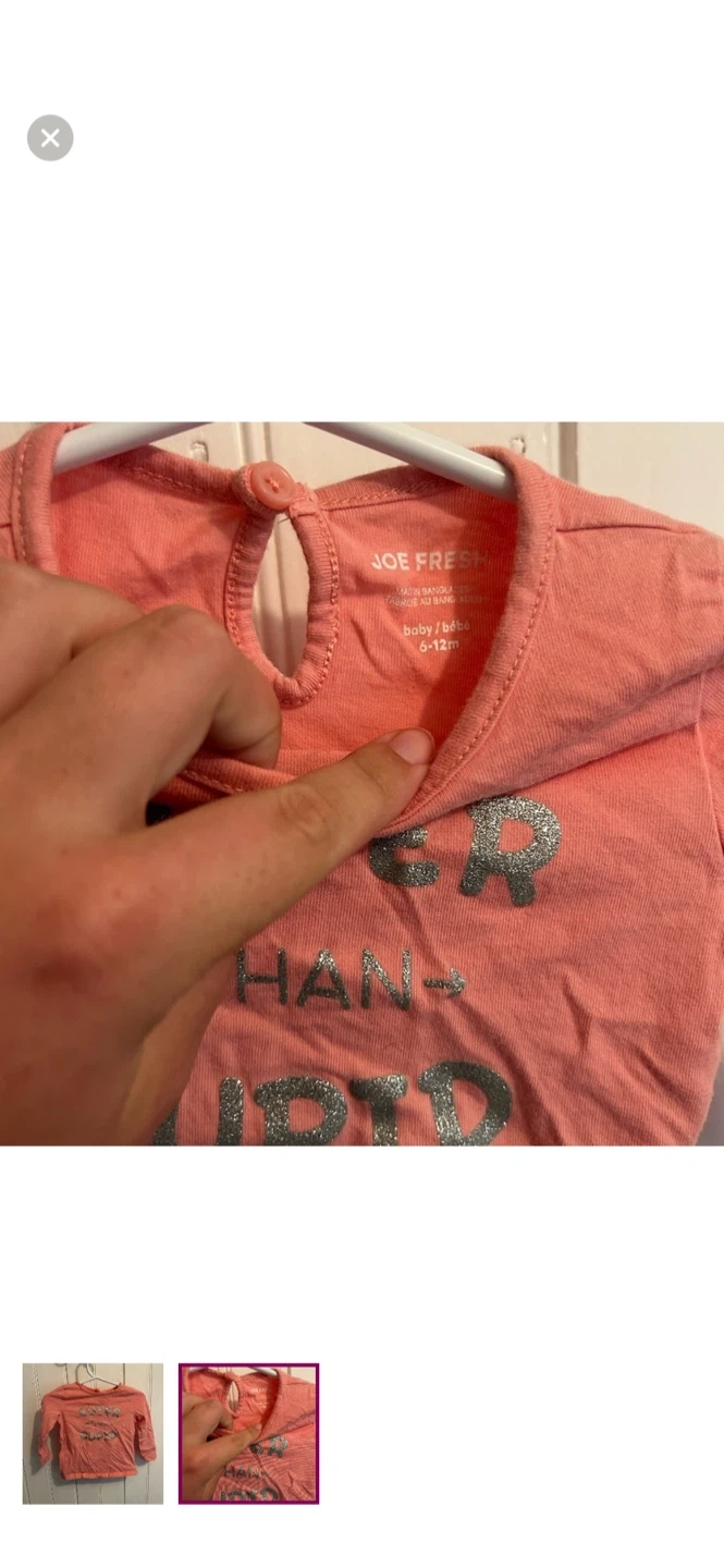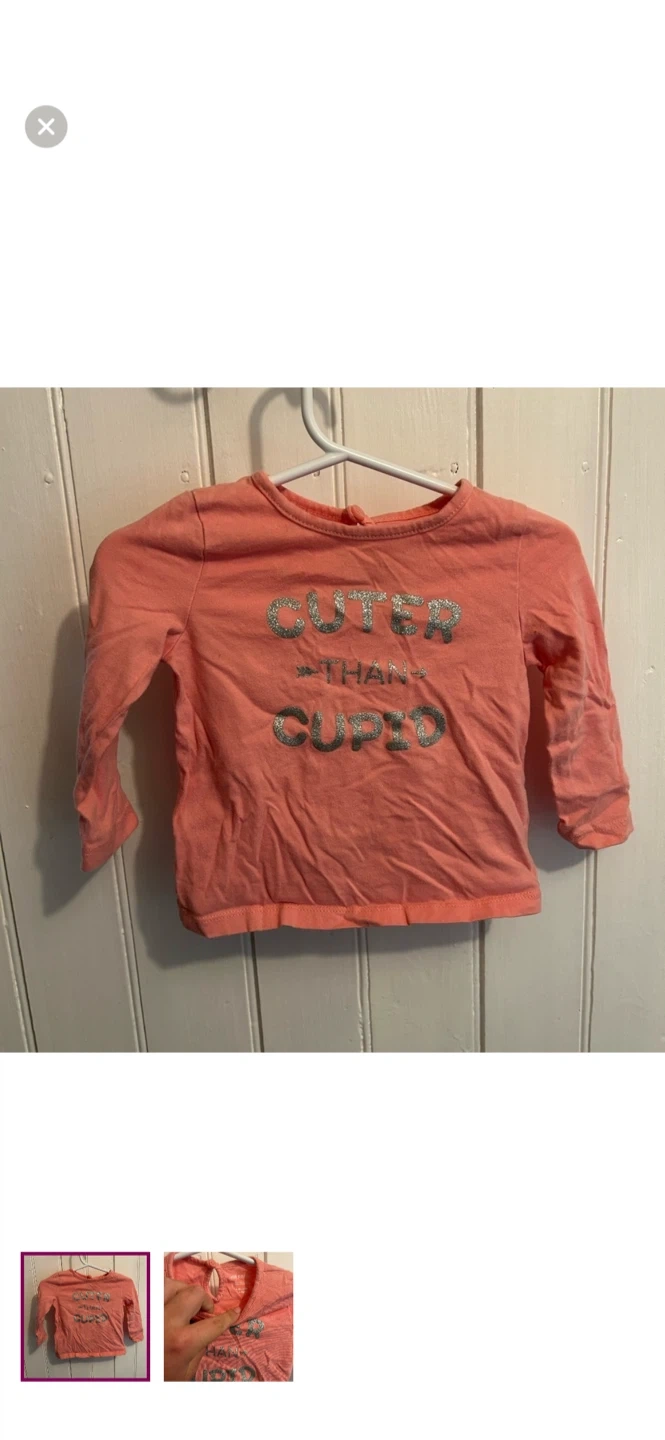 Joe fresh brand. Long sleeve top. Pink with silver glitter cuter than Cupid graphic. Size 6/12m. Brand new condition