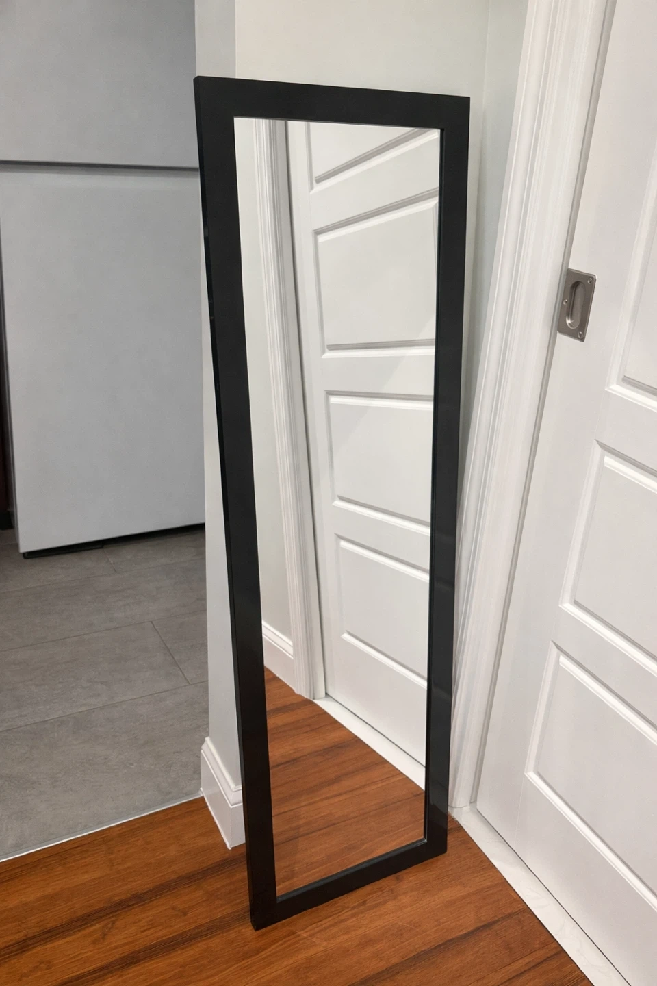 Selling a full-length mirror with a sleek black frame! It's in great condition and ready to brighten up your space. Perfect for bedrooms, dressing rooms, or entryways
