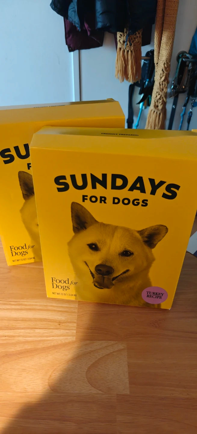 Selling 2 boxes of Sundays for Dogs, Turkey Recipe, 72oz size for $70 each (bought them for 105 each). Unfortunately I found out that my dog is allergic to poultry.