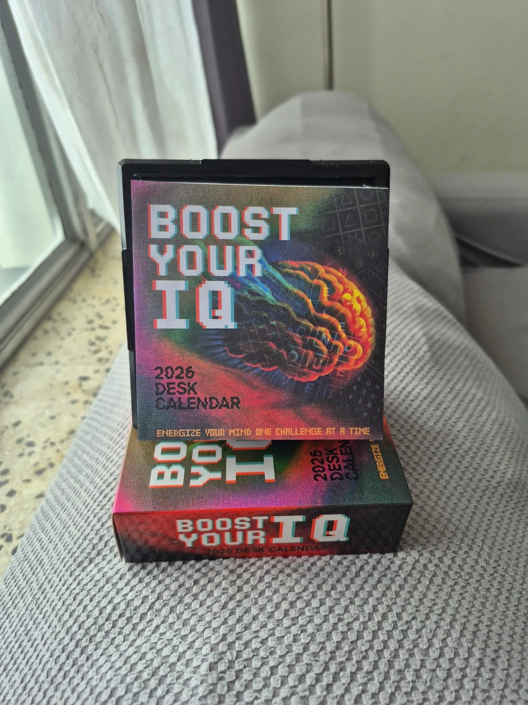 This small, lightweight and portable 2026 calendar has over 360 puzzles (more than 10 different puzzles) for each day of the year! Perfect for keeping track of days while challenging and strengthening your mind! All puzzles are ready to be solved. Cash and pickup only :)