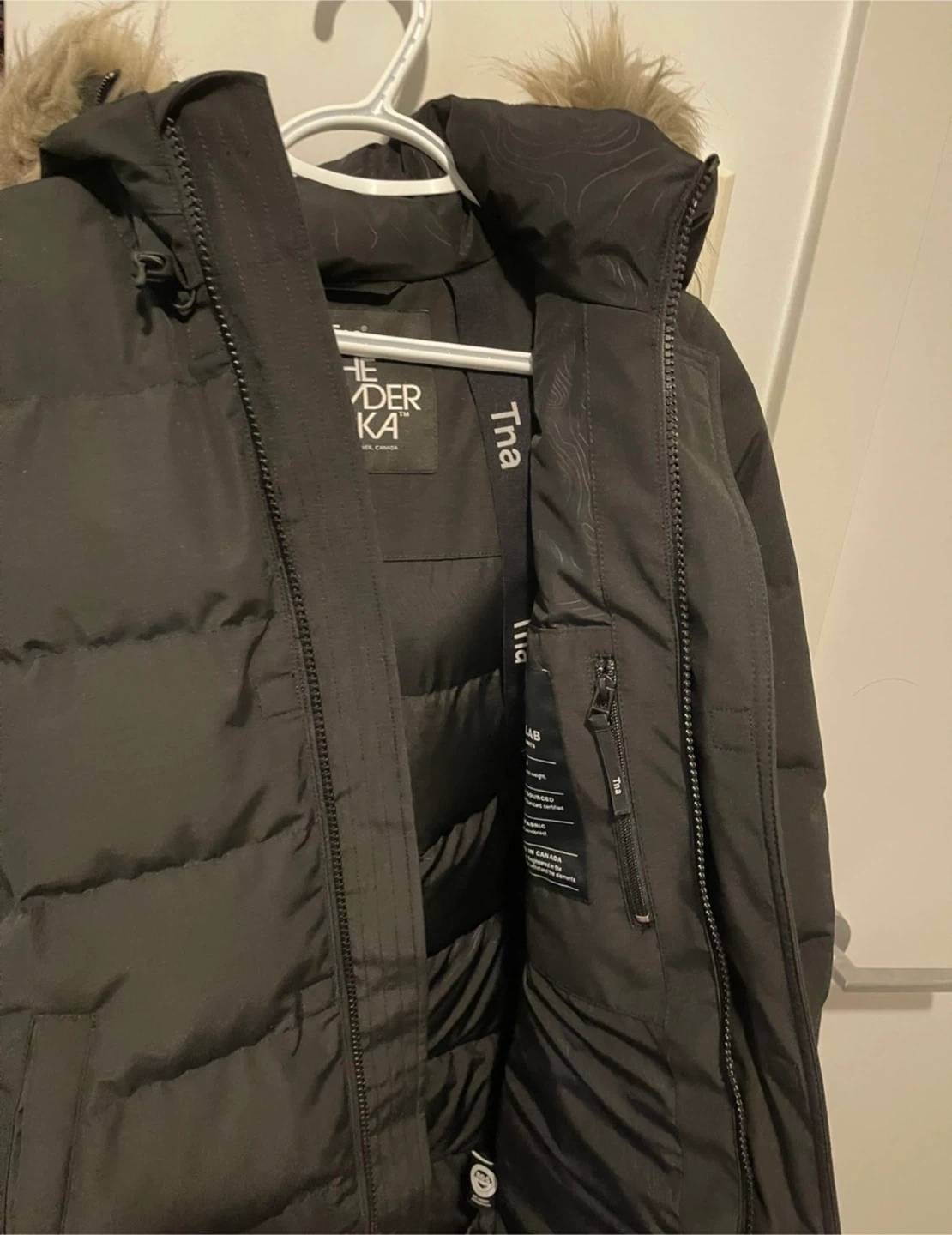 Selling a Tna The Powder Parka from Aritzia in black! This cozy parka is perfect for the Canadian winter. It features a faux fur-trimmed hood and a warm, insulated design. Originally bought for $375
