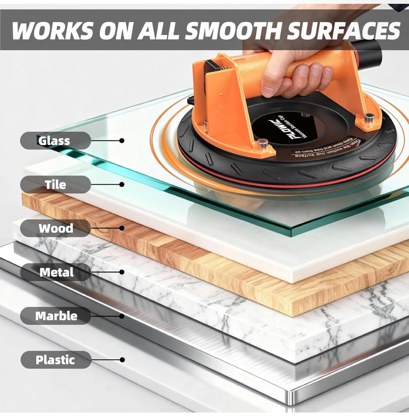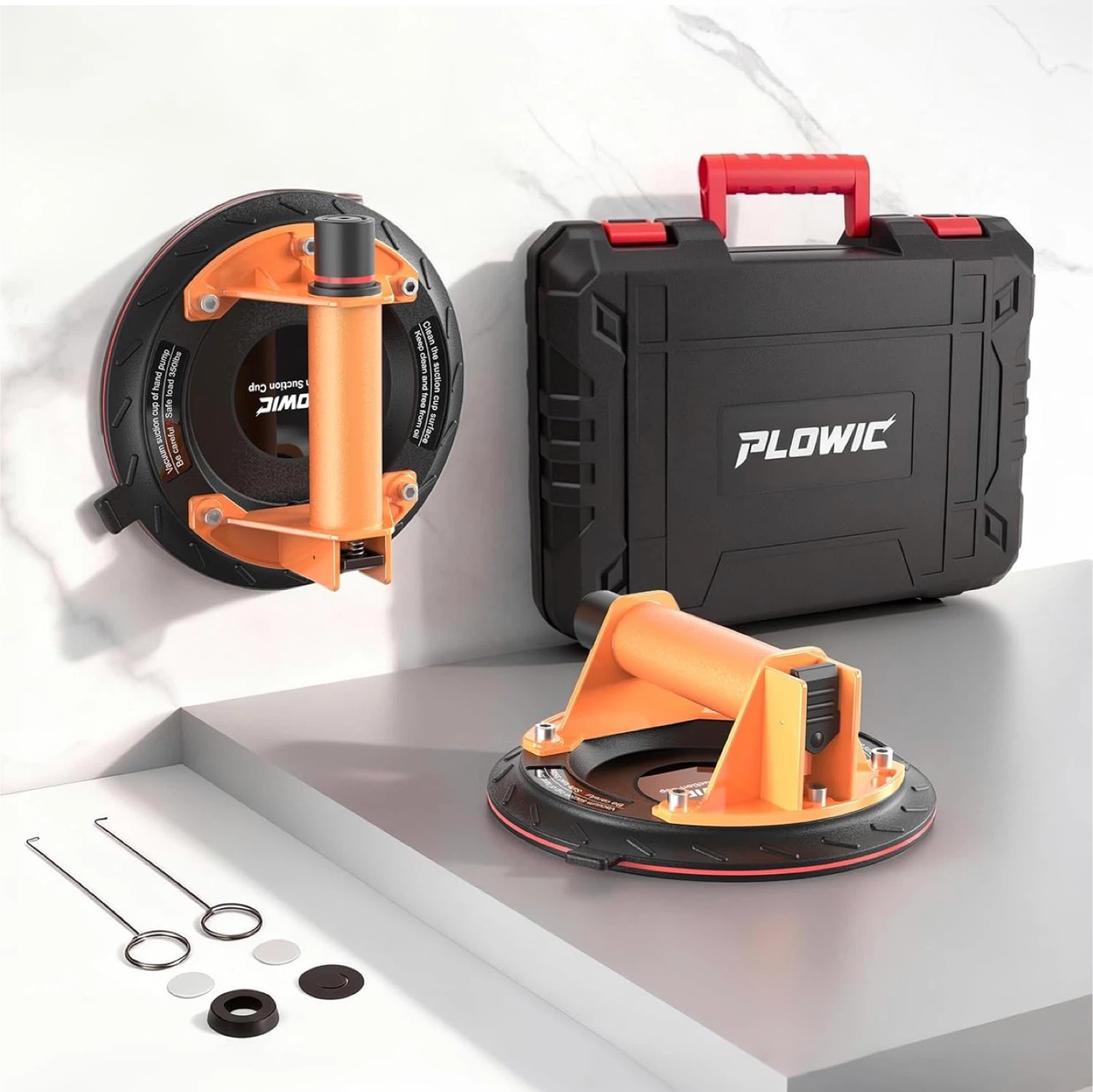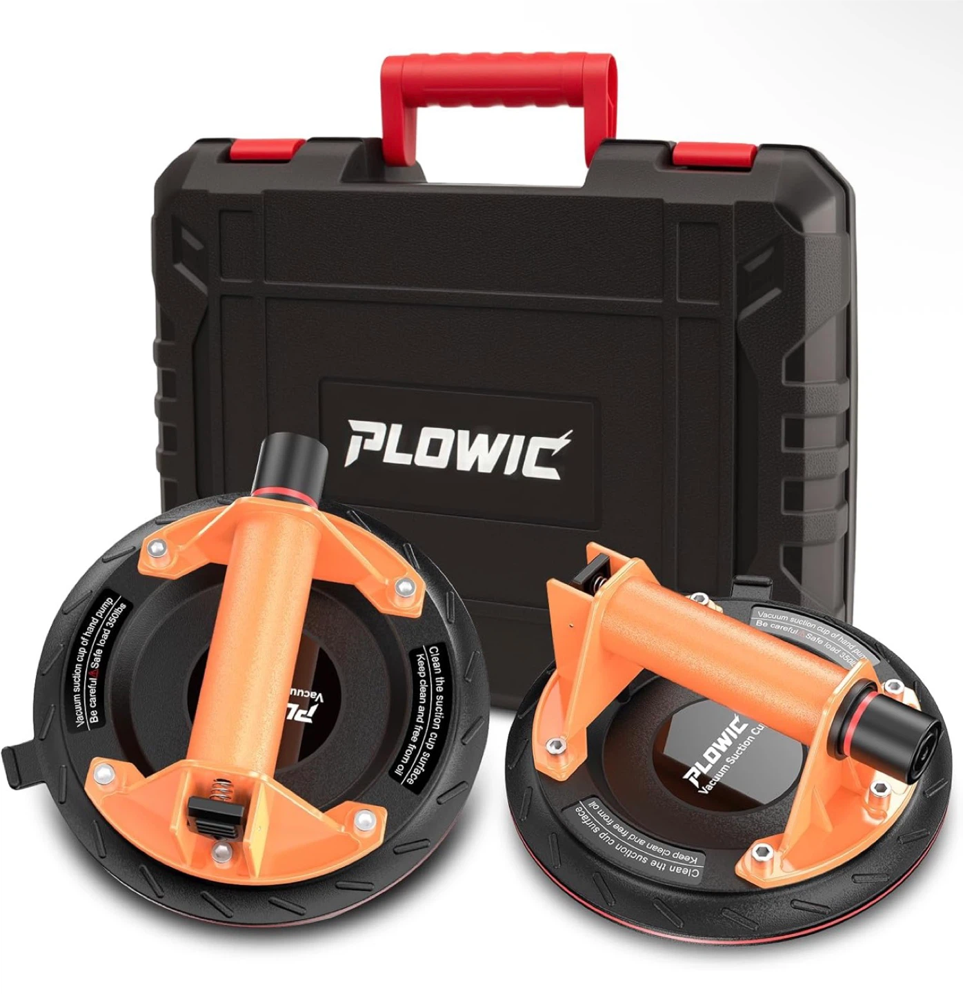 Glass Suction Cups with Heavy Duty: 8 Inch Tile Suction Cup Lifter with Handle and Pump, 440 LBS Load Capacity Vacuum Cup Tool to Lift Large Glass, Tile, Granite, Window, Windshield (2 Pack)