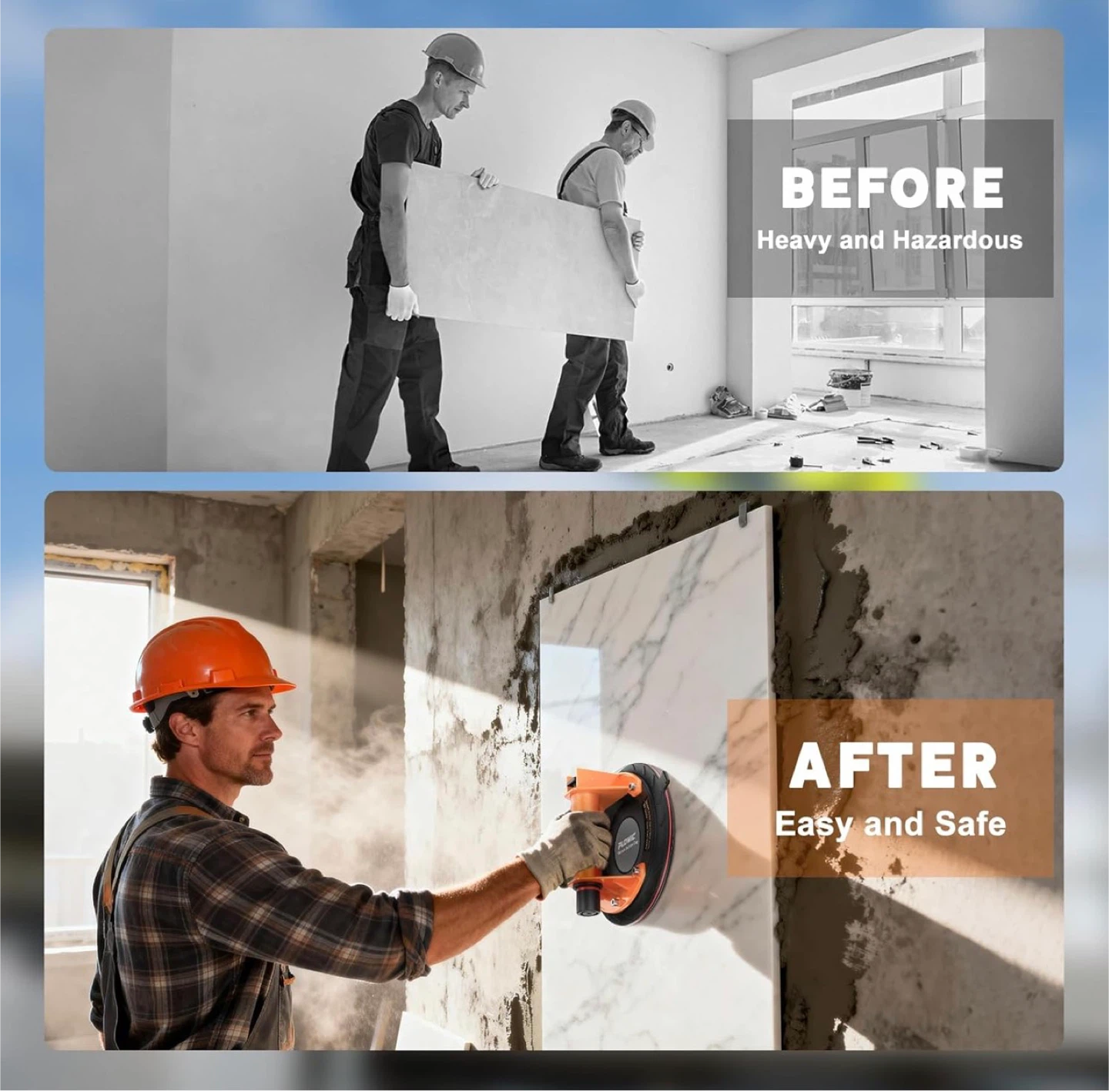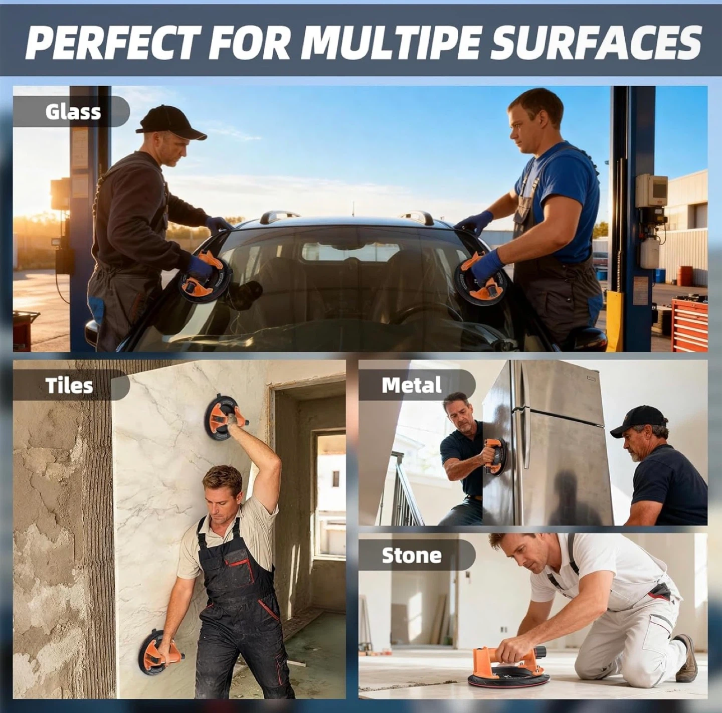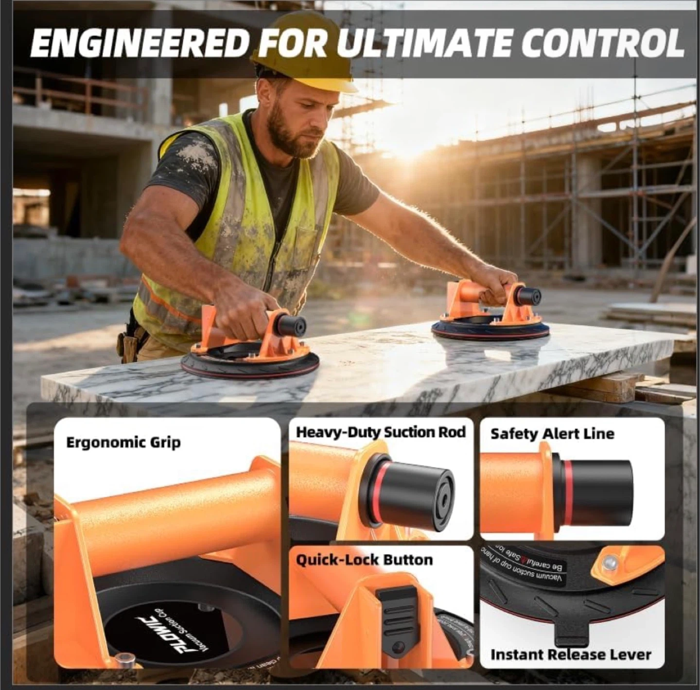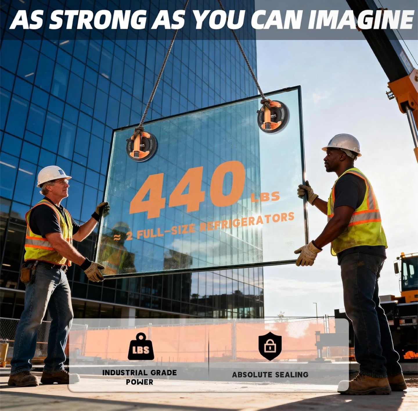 Glass Suction Cups with Heavy Duty: 8 Inch Tile Suction Cup Lifter with Handle and Pump, 440 LBS Load Capacity Vacuum Cup Tool to Lift Large Glass, Tile, Granite, Window, Windshield (2 Pack)