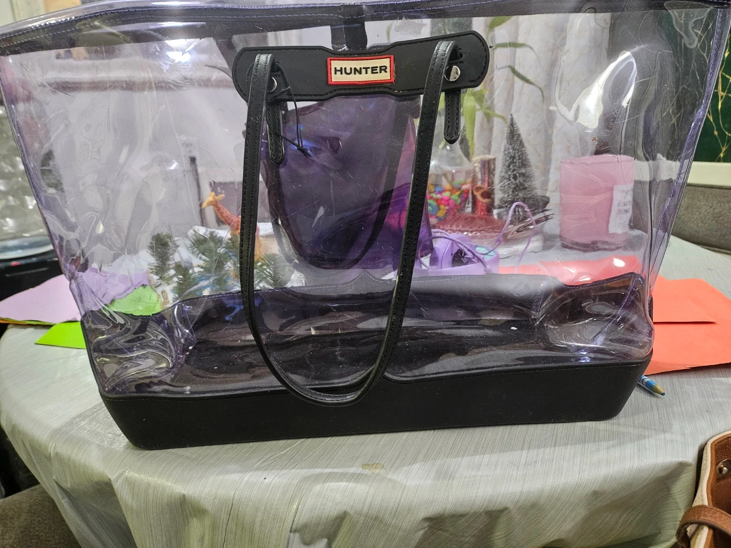 Selling a Hunter clear tote bag! It's in great condition and perfect for carrying your essentials. The clear design is stylish and practical