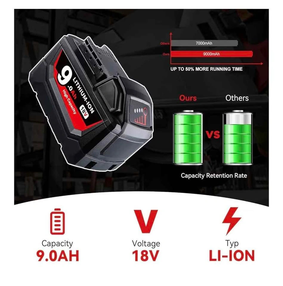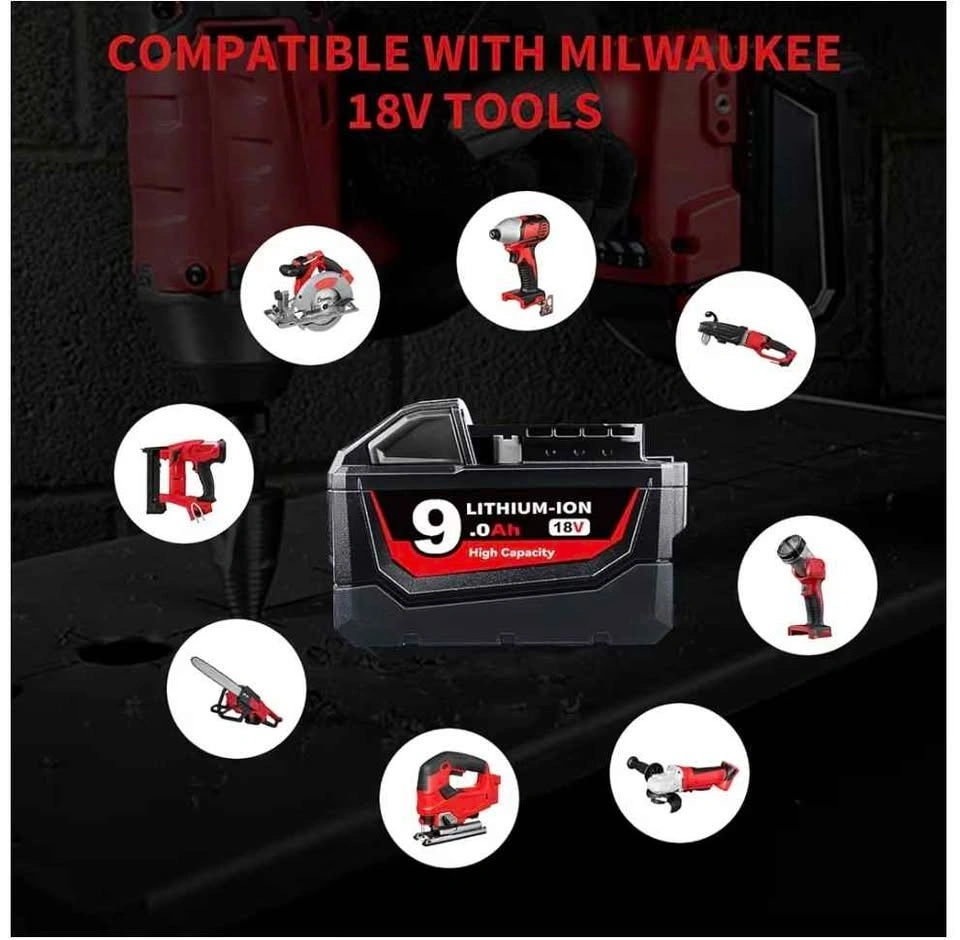 Reemplazo batería de 9.0Ah para batería Milwaukee de 18 V 48-11-1880 litio compatible con 48-11-1810 48-11-1820 48-11-1840 48-11-1850 48-11-1828 48-11-1860 Herramientas inalámbricas